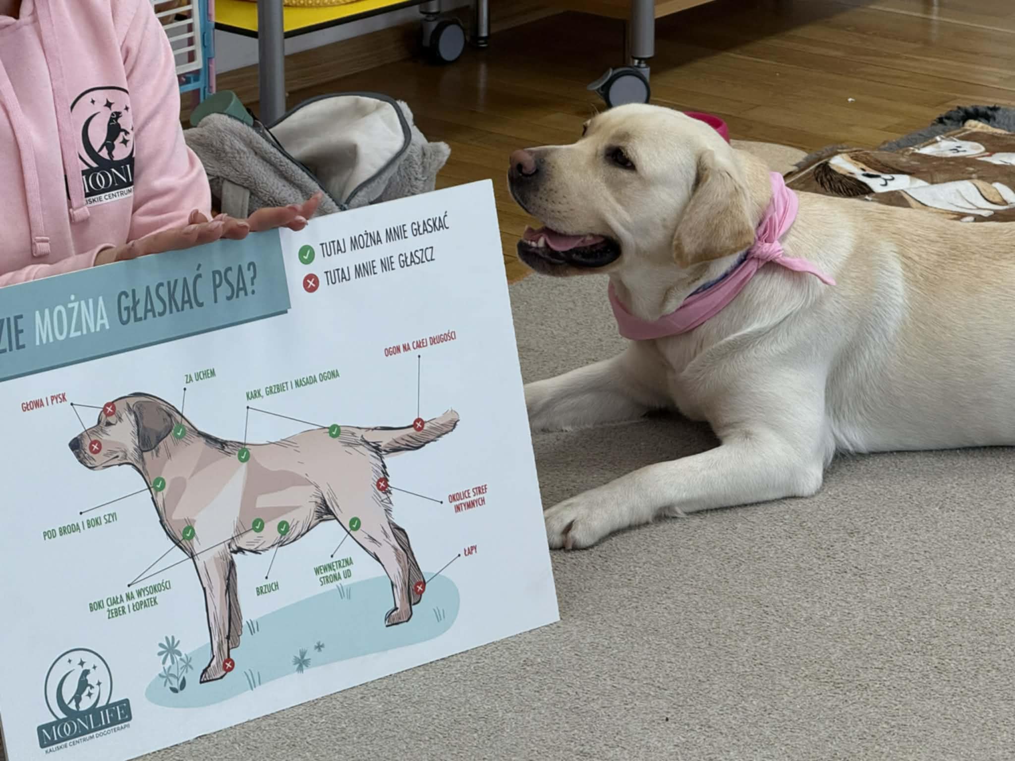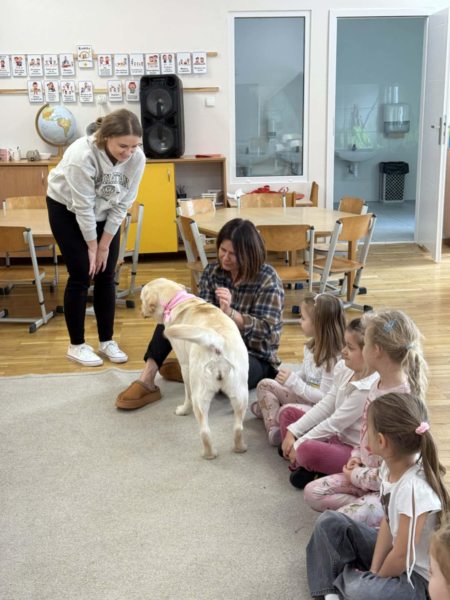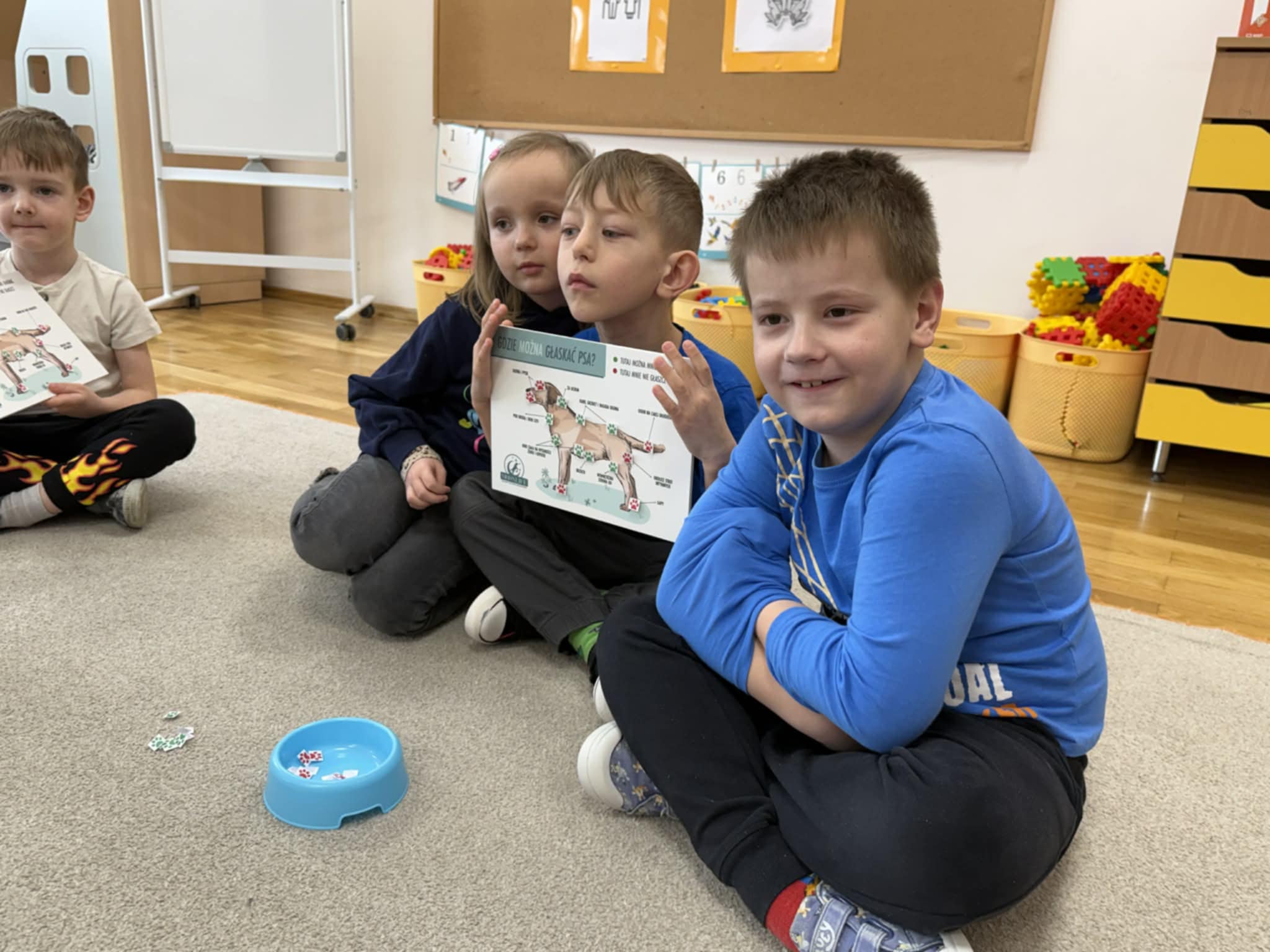 Podczas zajęć dzieci poznały zasady bezpiecznego kontaktu z psem, miały możliwość głaskania go, wydawania prostych poleceń oraz uczestniczenia w zabawach ruchowych. Spotkanie sprawiło dzieciom wiele radości, sprzyjało wyciszeniu, koncentracji oraz budowaniu pozytywnych emocji.