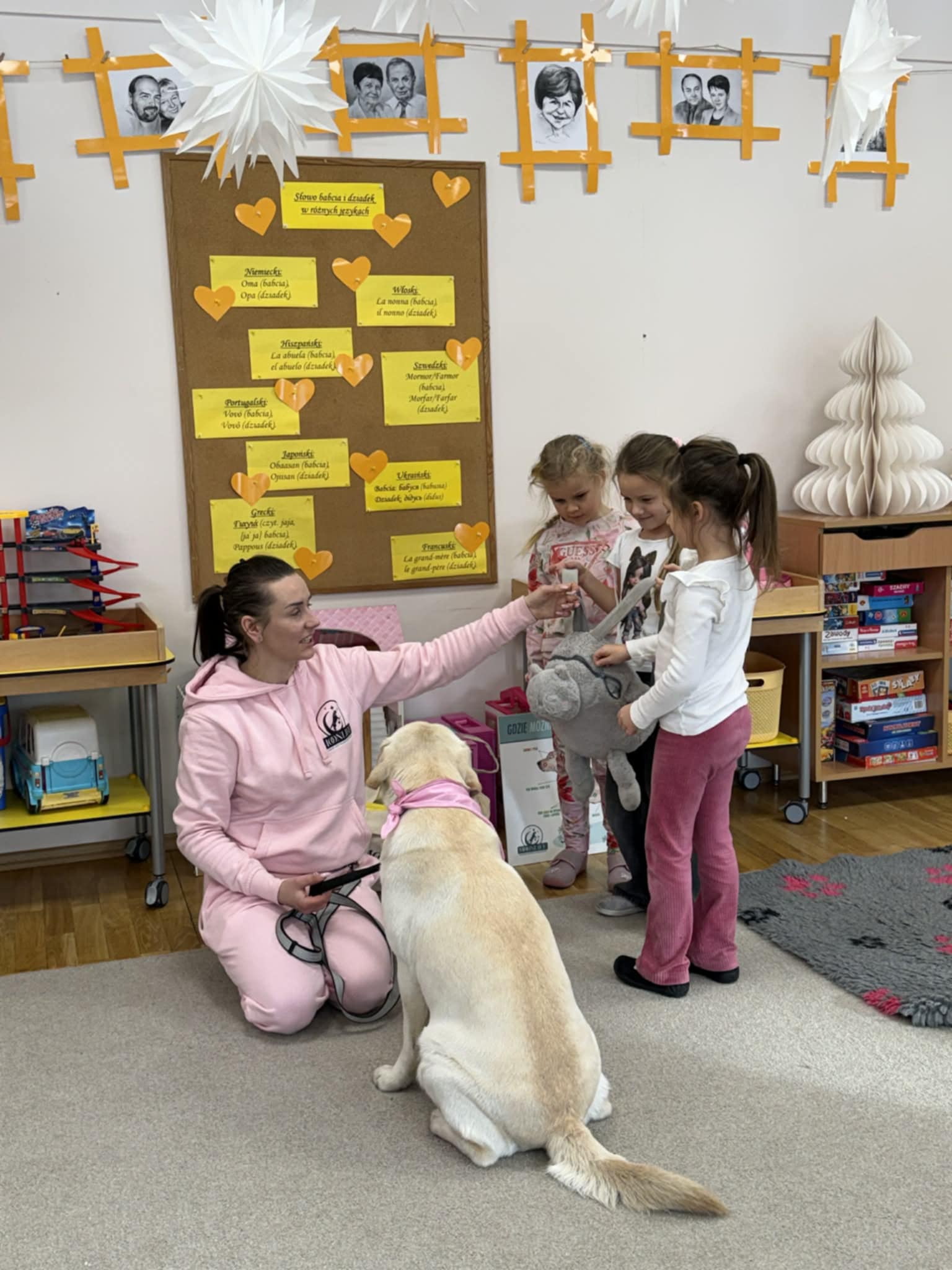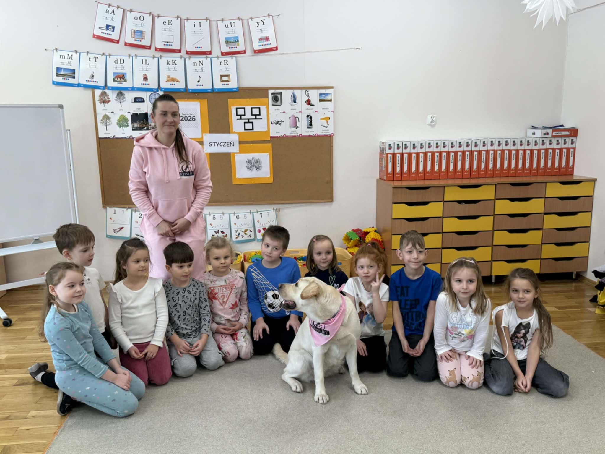 Dnia 13 stycznia w przedszkolu odbyły się zajęcia z dogoterapii. Dzieci uczestniczyły w spotkaniu z psem terapeutycznym pod opieką wykwalifikowanego terapeuty. Celem zajęć było wspieranie rozwoju emocjonalnego i społecznego dzieci, kształtowanie empatii oraz nauka prawidłowych zachowań wobec zwierząt.
