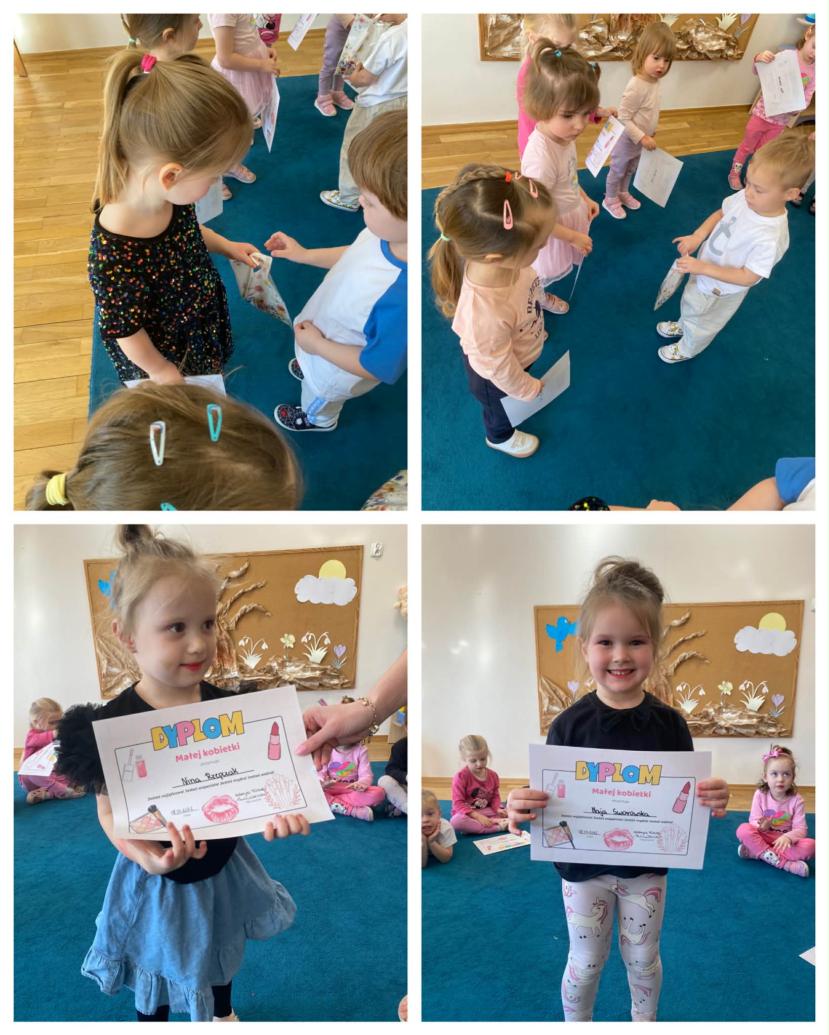 Szczęśliwe dostały dyplomy małej kobietki i razem z chłopcami świętowały ten wspaniały dzień
