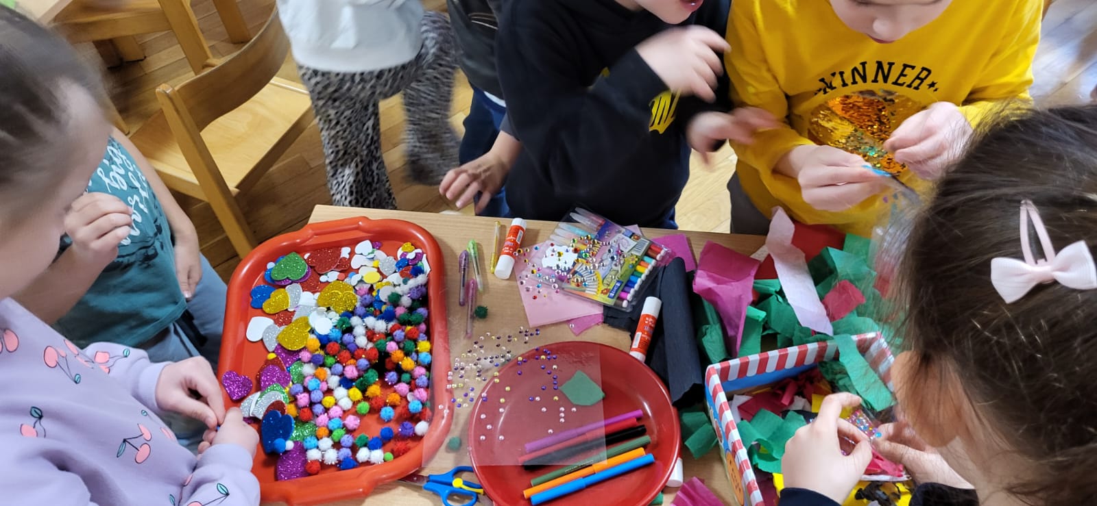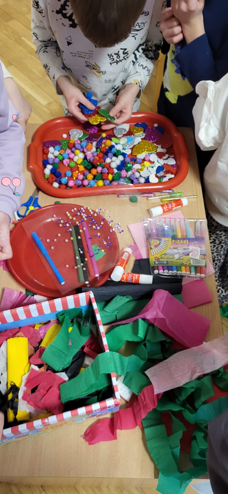 Przedszkolaki ozdabiały je m.in. brokatami, bibułą oraz kolorowymi pisakami. Kreatywności i radości było co niemiara, a efekty pracy zachwycały różnorodnością i pomysłowością.