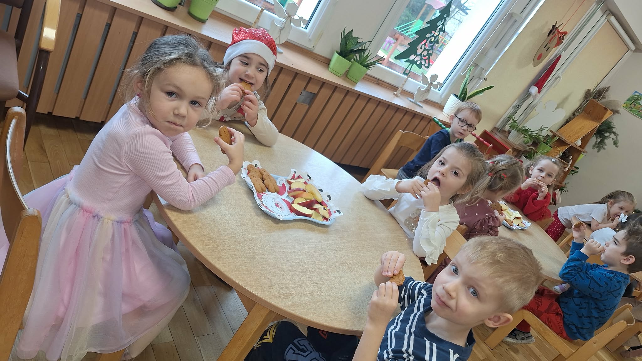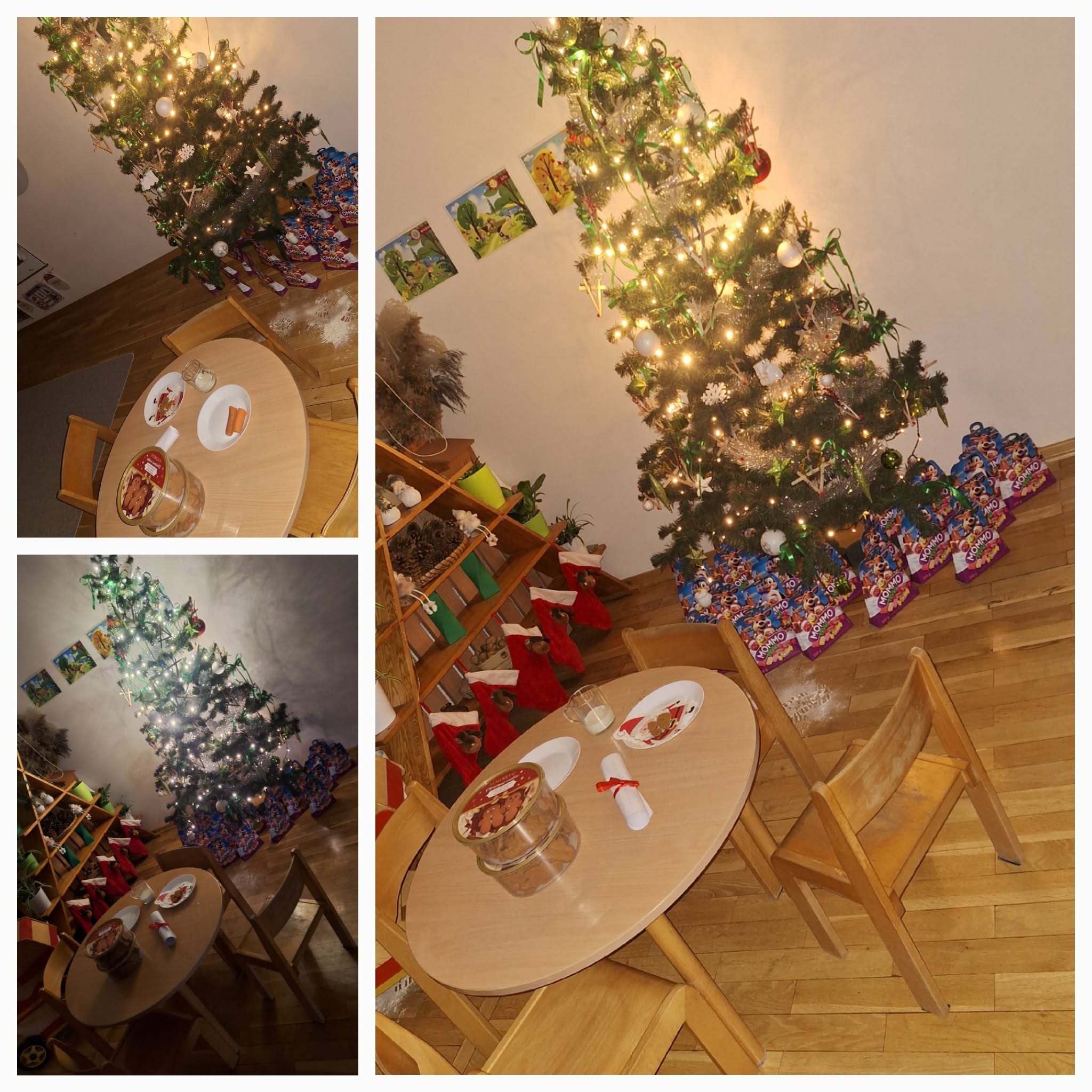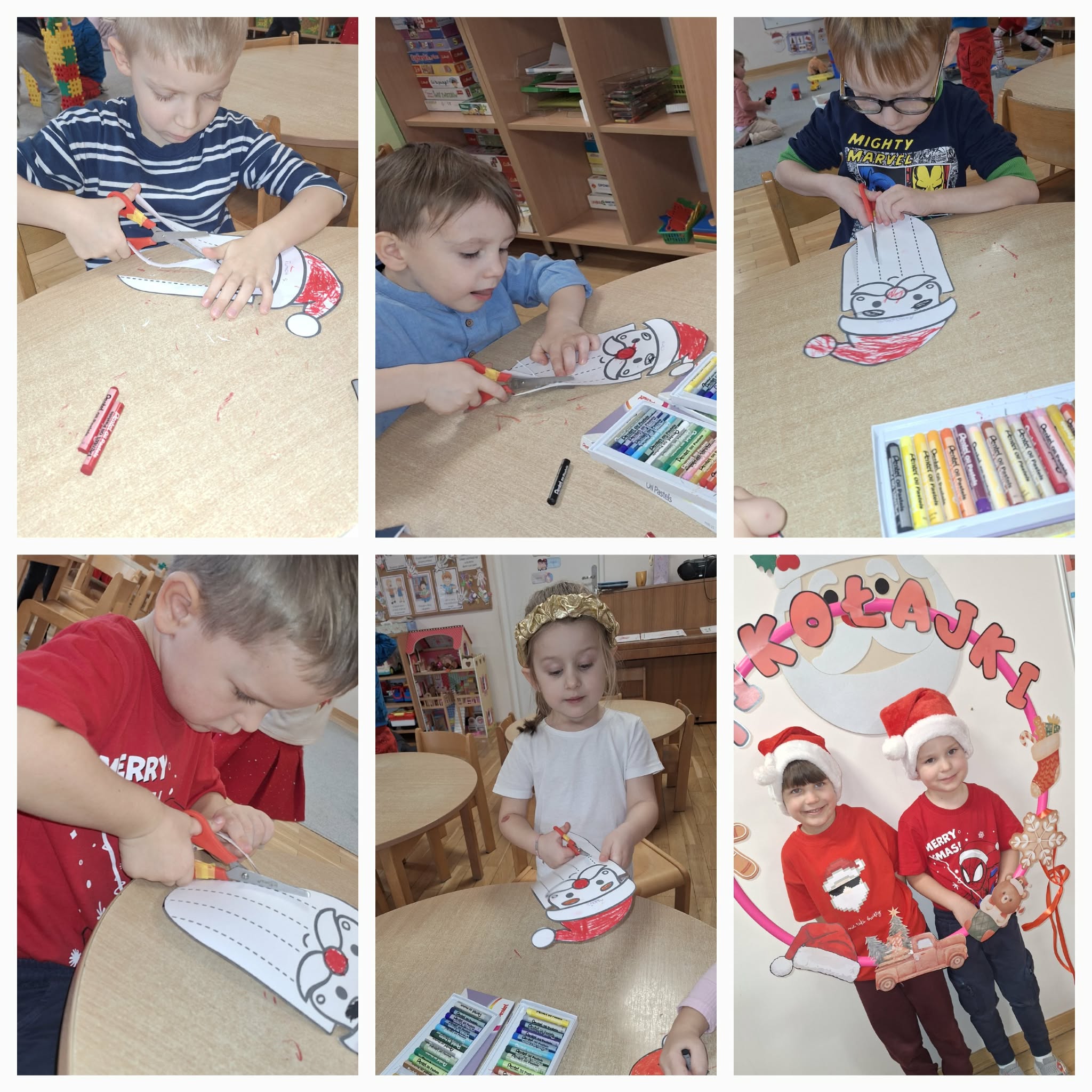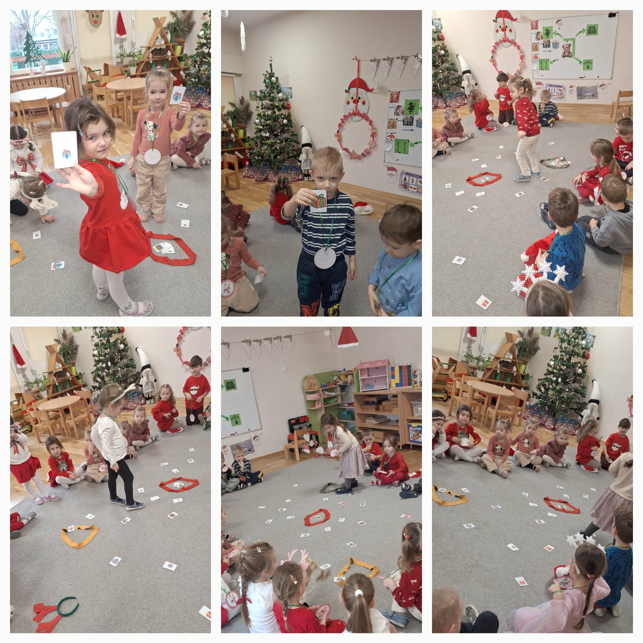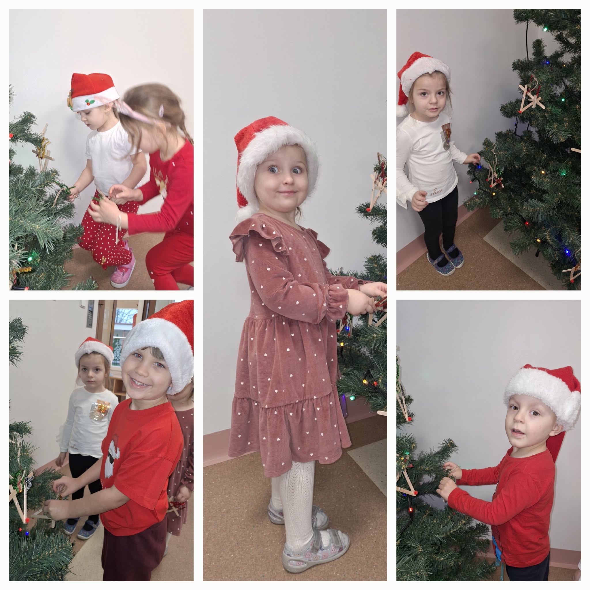 Mikołajki to dzień, na który dzieci czekają z niecierpliwością. W tym dniu nasze przedszkolaki zamieniły się w pomocników Mikołaja i przyszły do przedszkola w czerwonych strojach oraz czapeczkach. Na przedszkolaków tego dnia pod choinką czekały słodkie upominki, które podrzucił sam Święty Mikołaj – pozostawiając ślady butów na podłodze i okruszki po zjedzonym ciasteczku i pustej szklanki po wypitym mleku. Przedszkolaki tego dnia śpiewały piosenkę o Mikołaju, brały udział w zabawach ruchowych, wykonały prace plastyczne ćwicząc przy tym cięcie nożyczkami. Dzieci segregowały papierowe prezenty, nazywały ilustracje z nazwami zabawek. Wieszały pranie Mikołaja. Na koniec zjadły słodką przekąskę w postaci jabłka oraz pierniczków, które zostawił dla nich Święty Mikołaj. To był wspaniały, pełen radości dzień.
