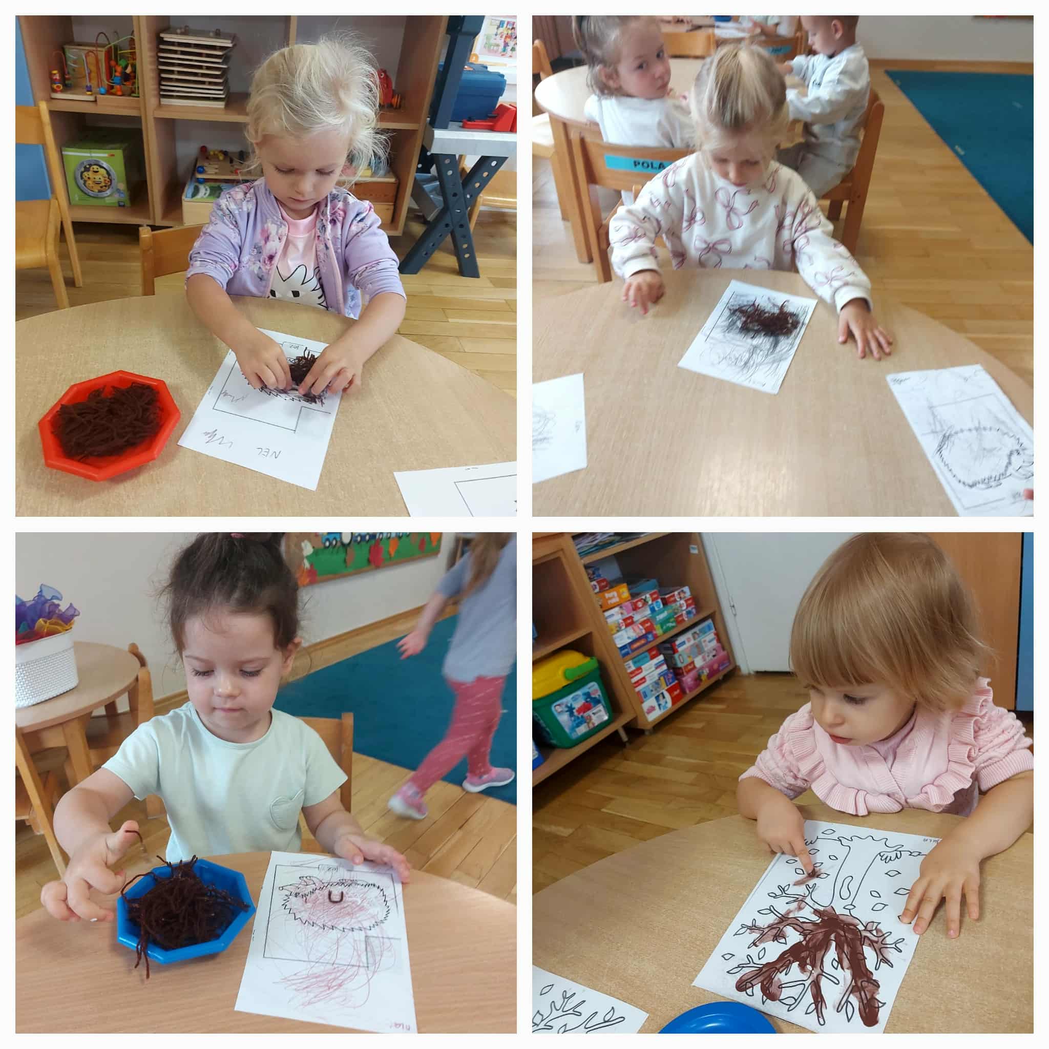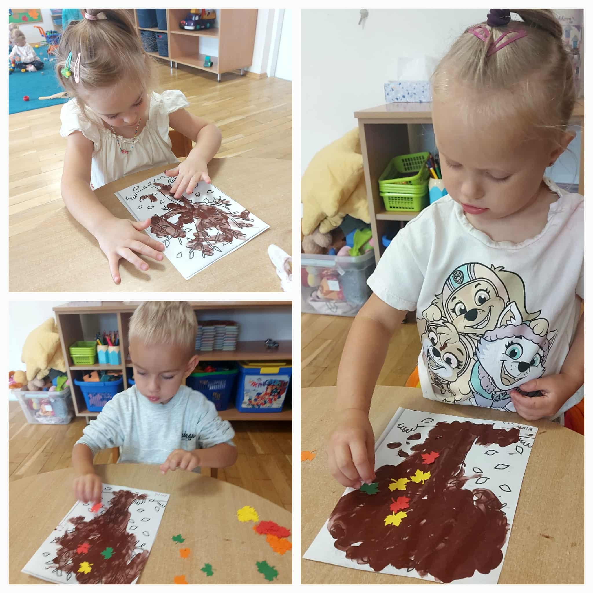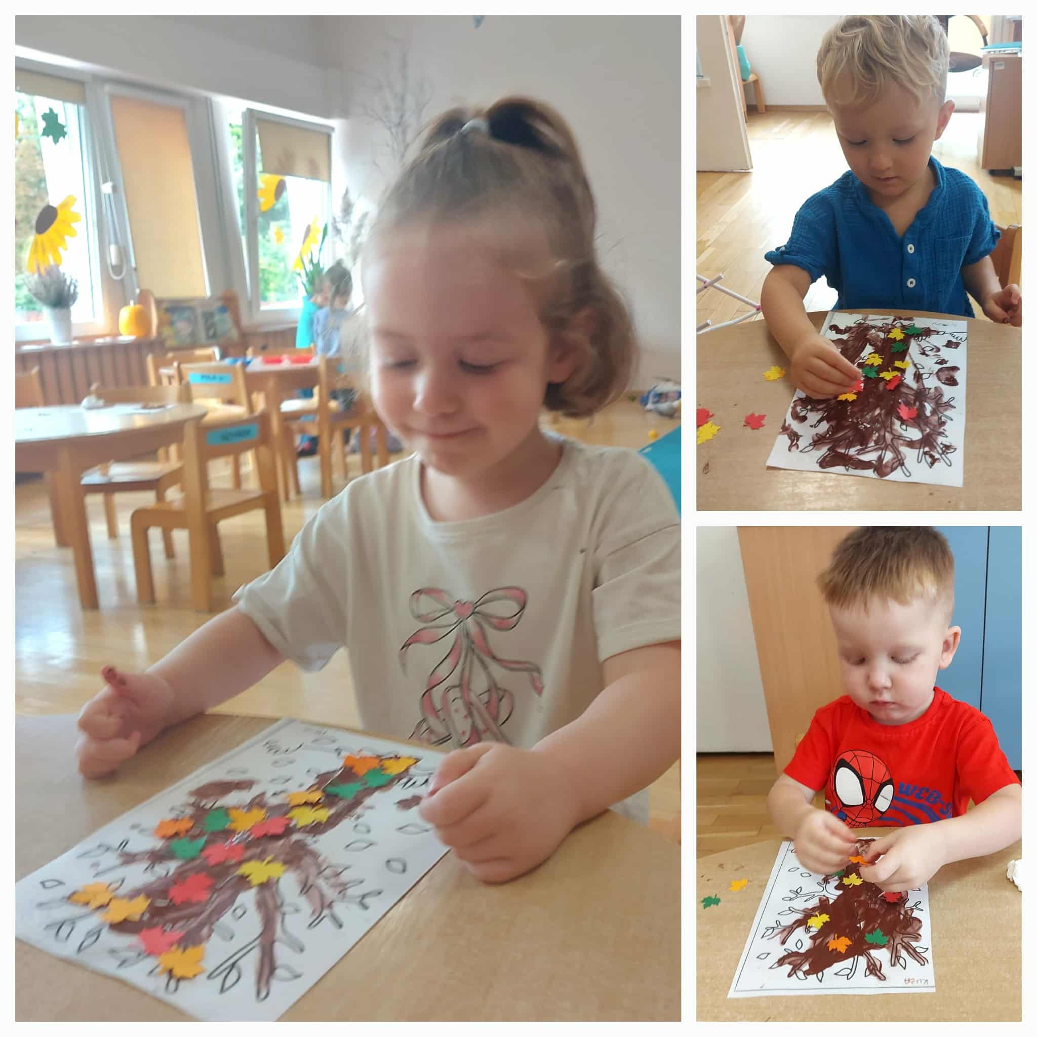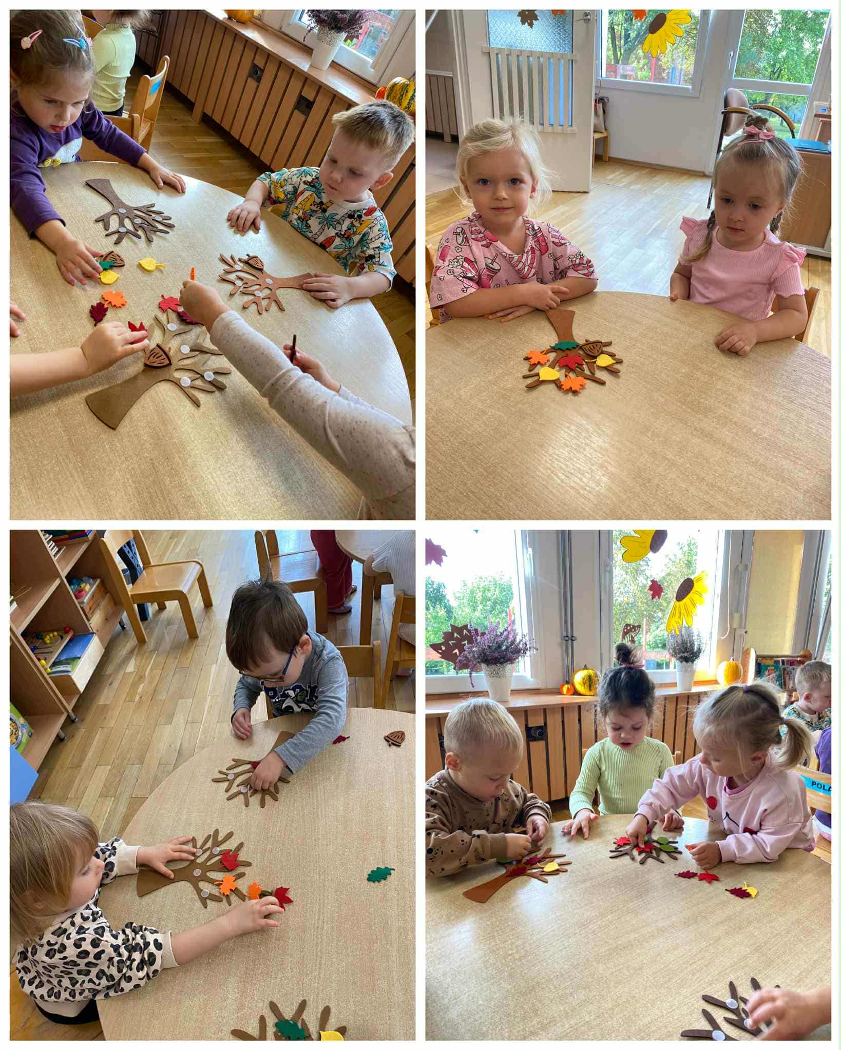 Dzieci poznały i segregowały jesienne dary, bawiły się przy jesiennych melodiach oraz z wielkim zaangażowaniem tworzyły kolorowe jesienne prace plastyczne.
