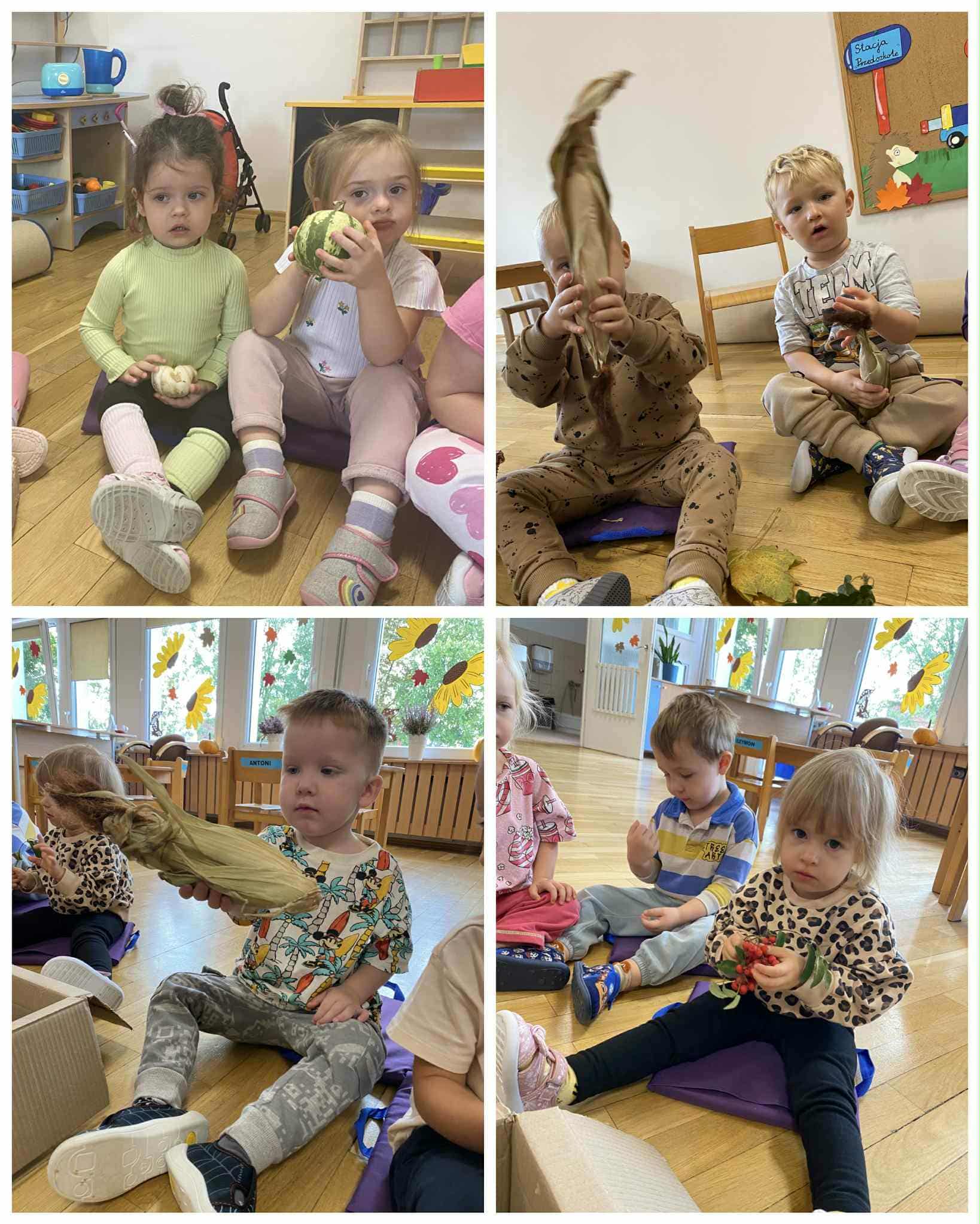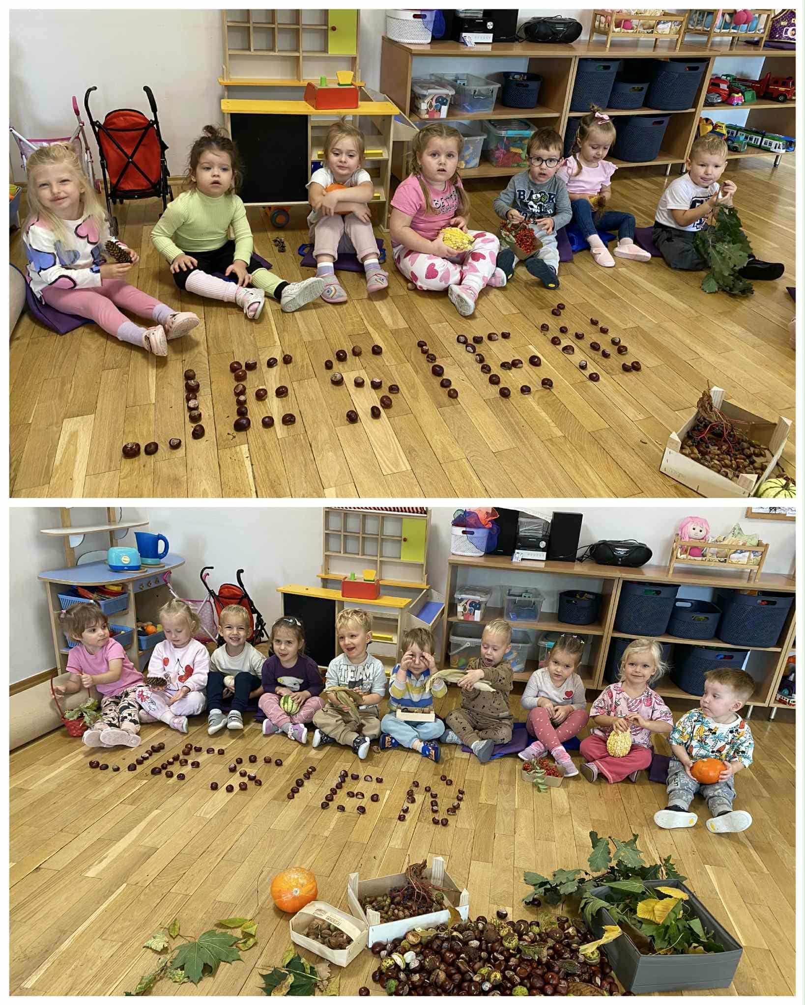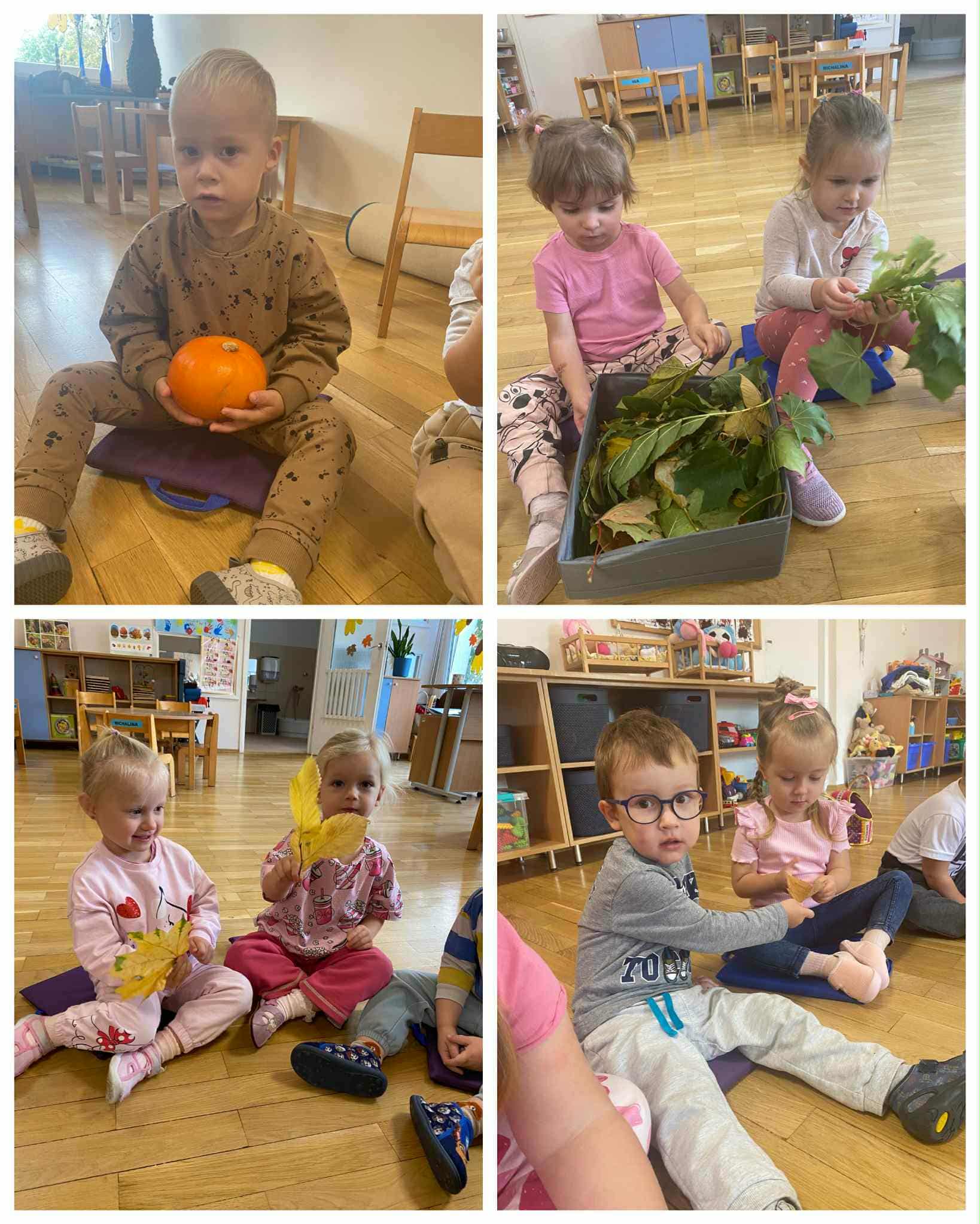 Dzieci brały udział w zajęciach i zabawach o tematyce jesiennej, poprzez które zdobywały wiadomości o rozpoczynającej się porze roku.