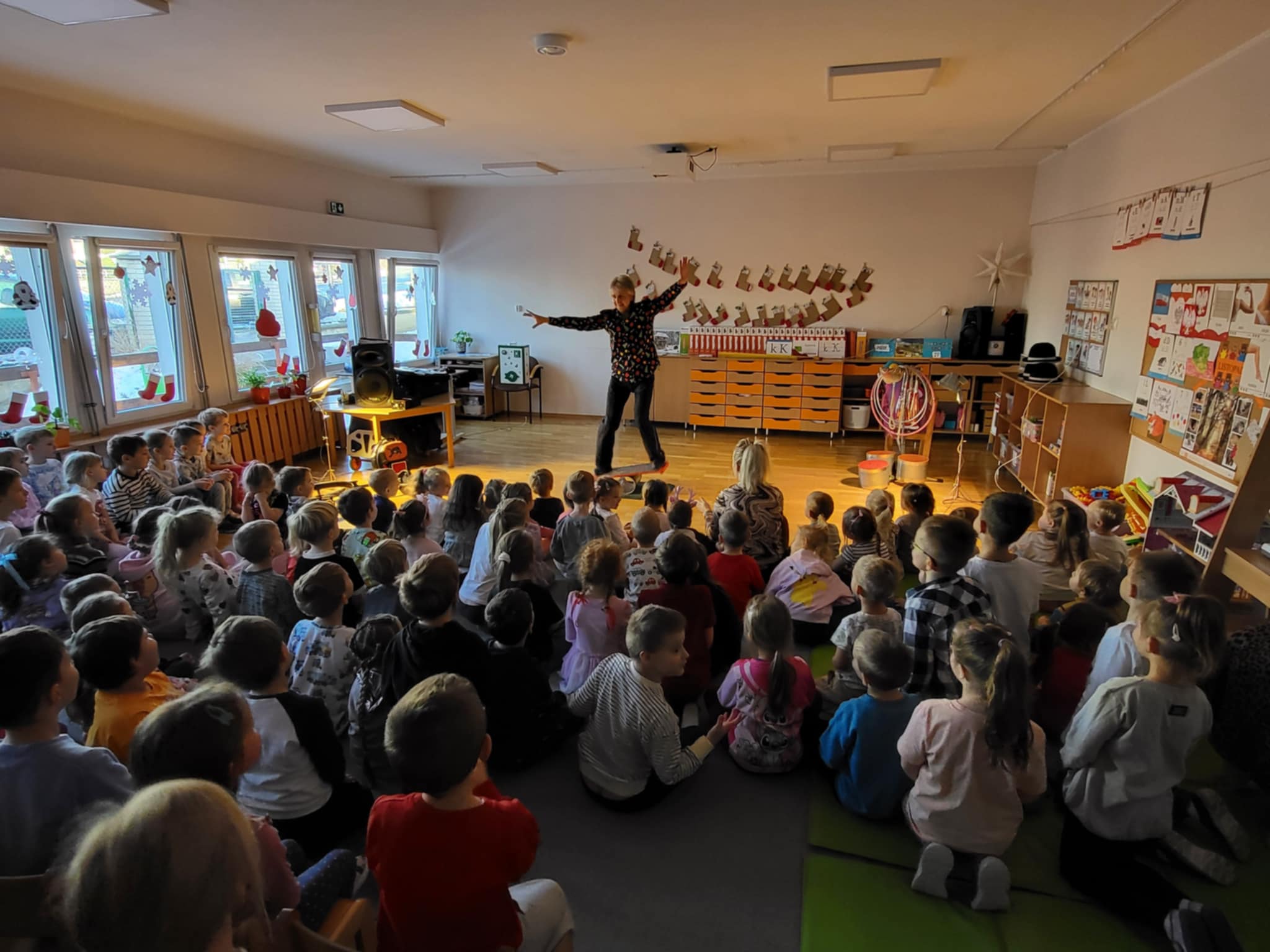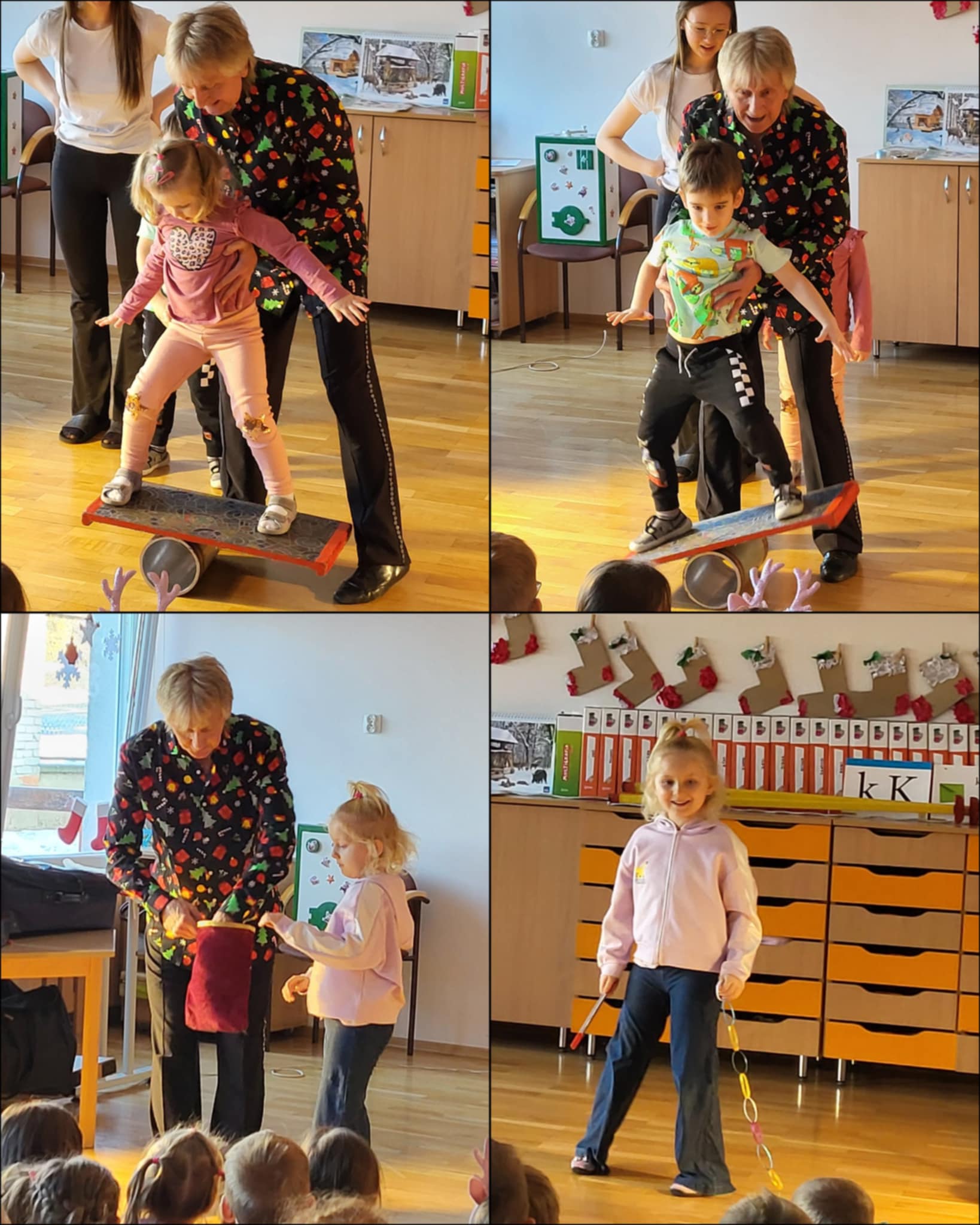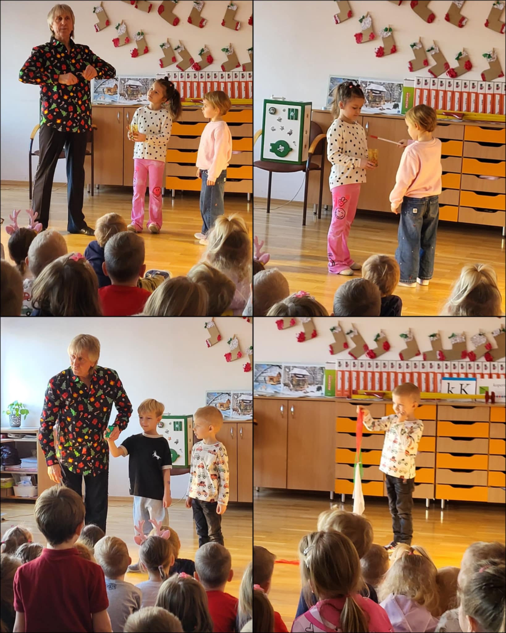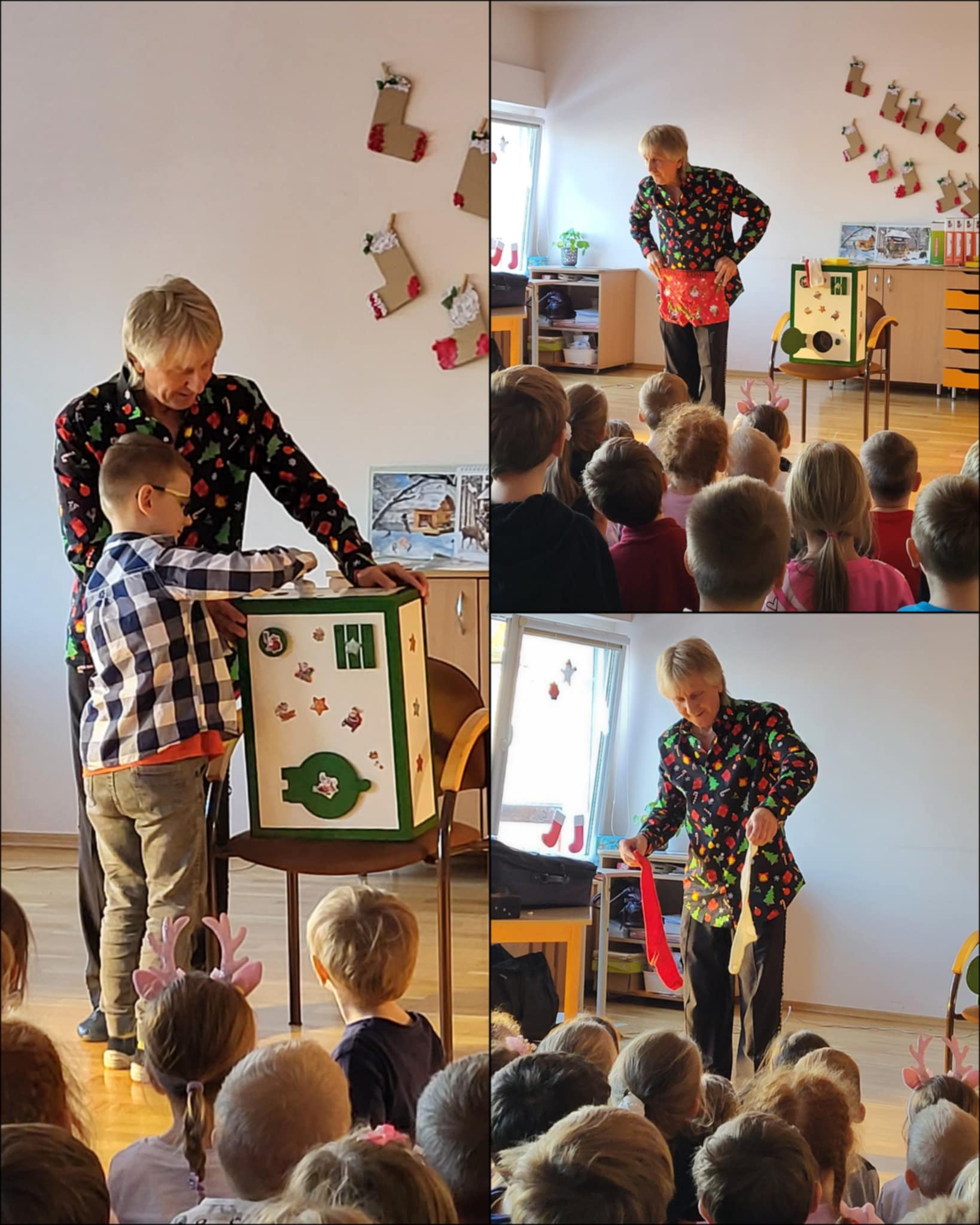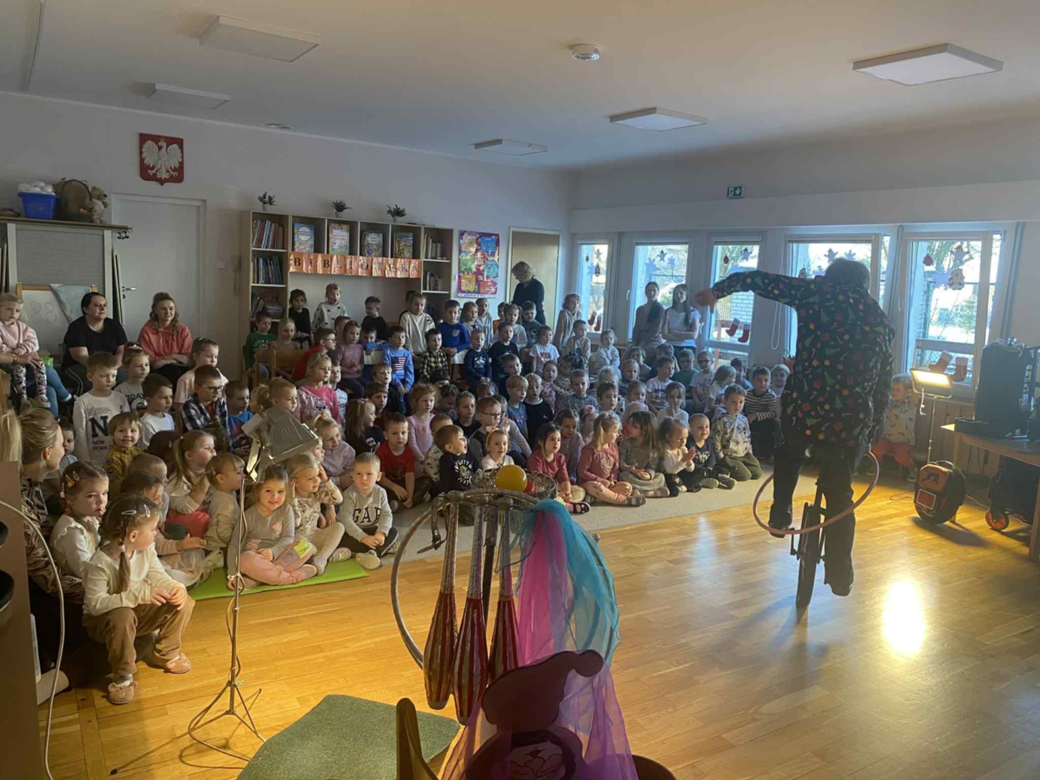 Magik zabrał nas do świata czarów i magii. Dzieci miały możliwość przeżycia czegoś niezwykłego, tym bardziej, że aktywnie uczestniczyły w przedstawieniu. Uczyły się tajemniczych zaklęć, a odważni ochotnicy pomagali mistrzowi w jego pokazie i same czarowały. Wszystkim dzieciom bardzo podobały się niesamowite sztuczki i czary. Wyprawa do tajemniczego świata dostarczyła wszystkim sporo satysfakcji, wiele humoru i radości. Niektóre z dzieci choć na chwilę same mogły zamienić się w małych czarodziejów. Przez całe przedstawienie na małych buziach widzów malował się uśmiech po czym stwierdzić można ,że występ był udany i trafiony w dziesiątkę.