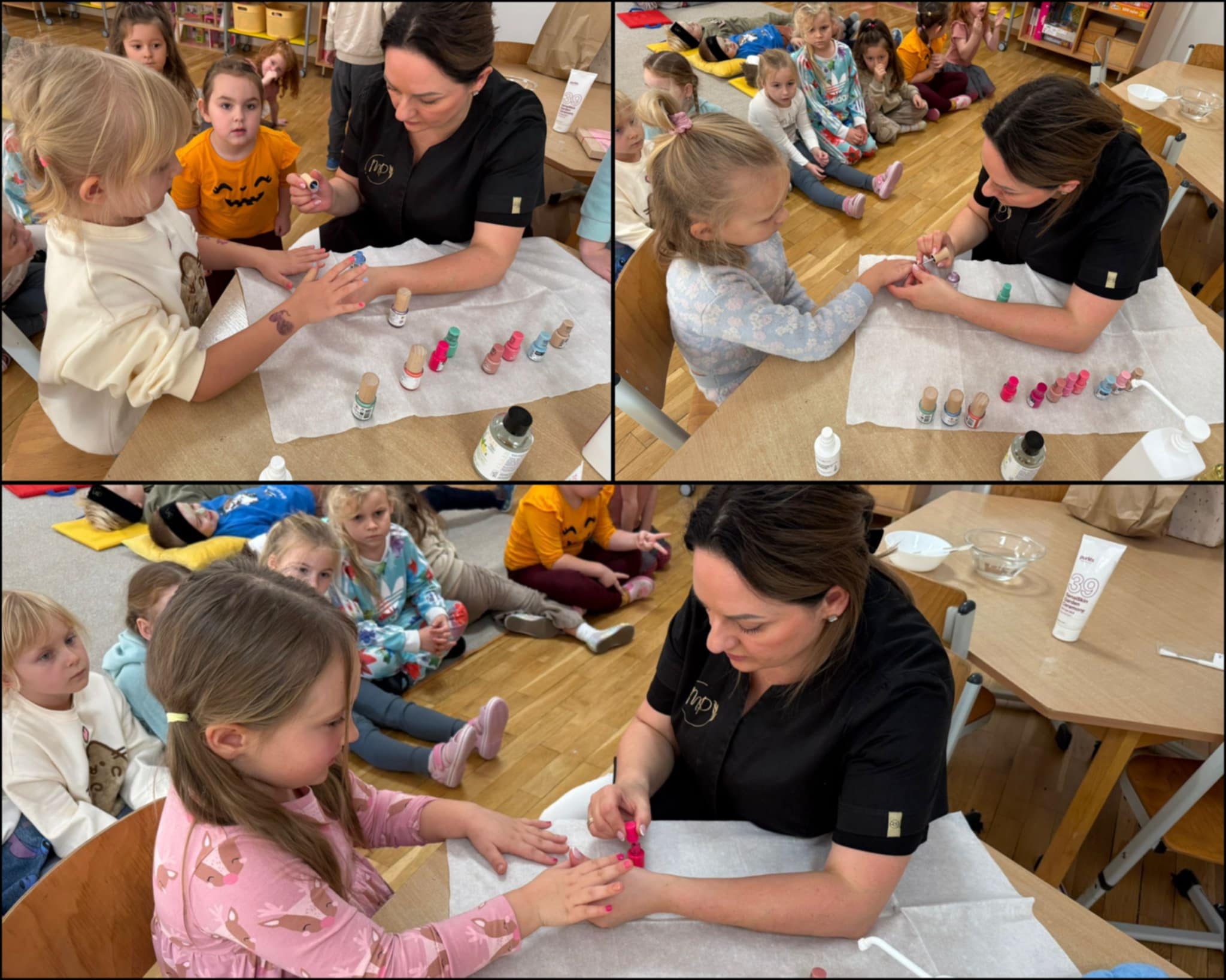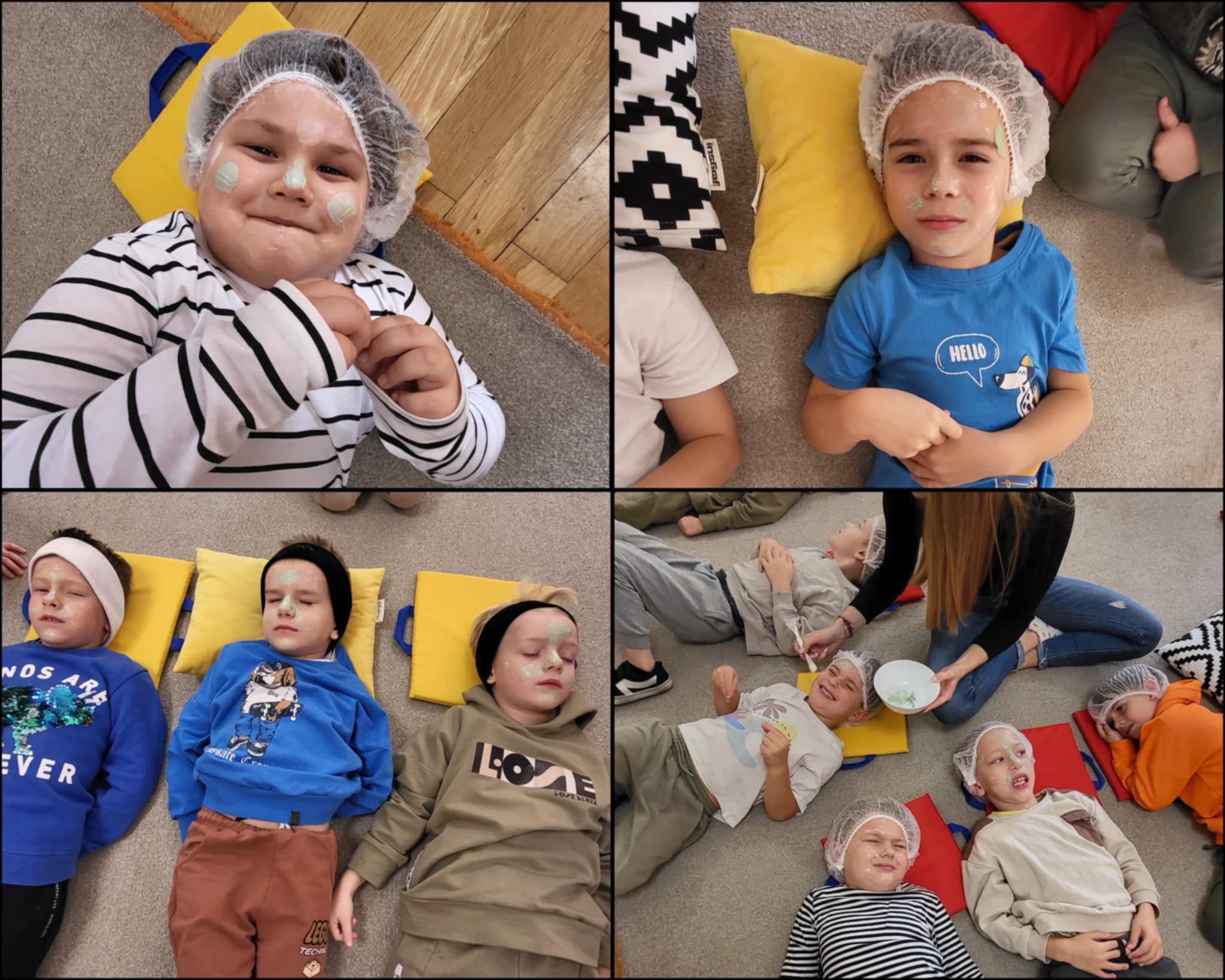 Dzieci chętnie uczestniczyły w zajęciach, odpowiadały na pytania i dzieliły się swoją wiedzą. Pani Marika przygotowała dla wszystkich małe przyjemności. Chłopcy mogli zrelaksować się z maseczką na twarzy. Dziewczynki za to poczuły się jak w prawdziwym salonie urody i miały malowane paznokcie. Nawet panie z grupy załapały się na masaż dłoni. Pani Marika przygotowała także dla dzieci słodki poczęstunek.