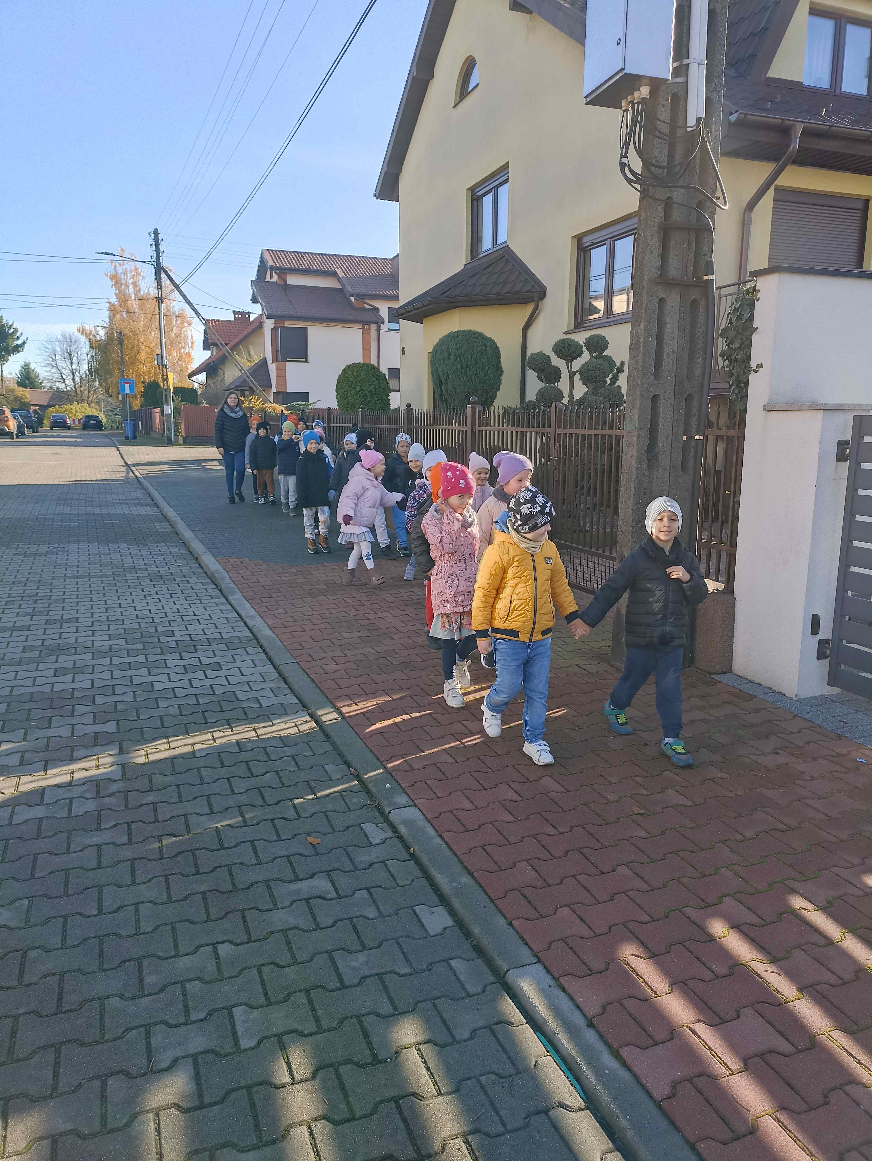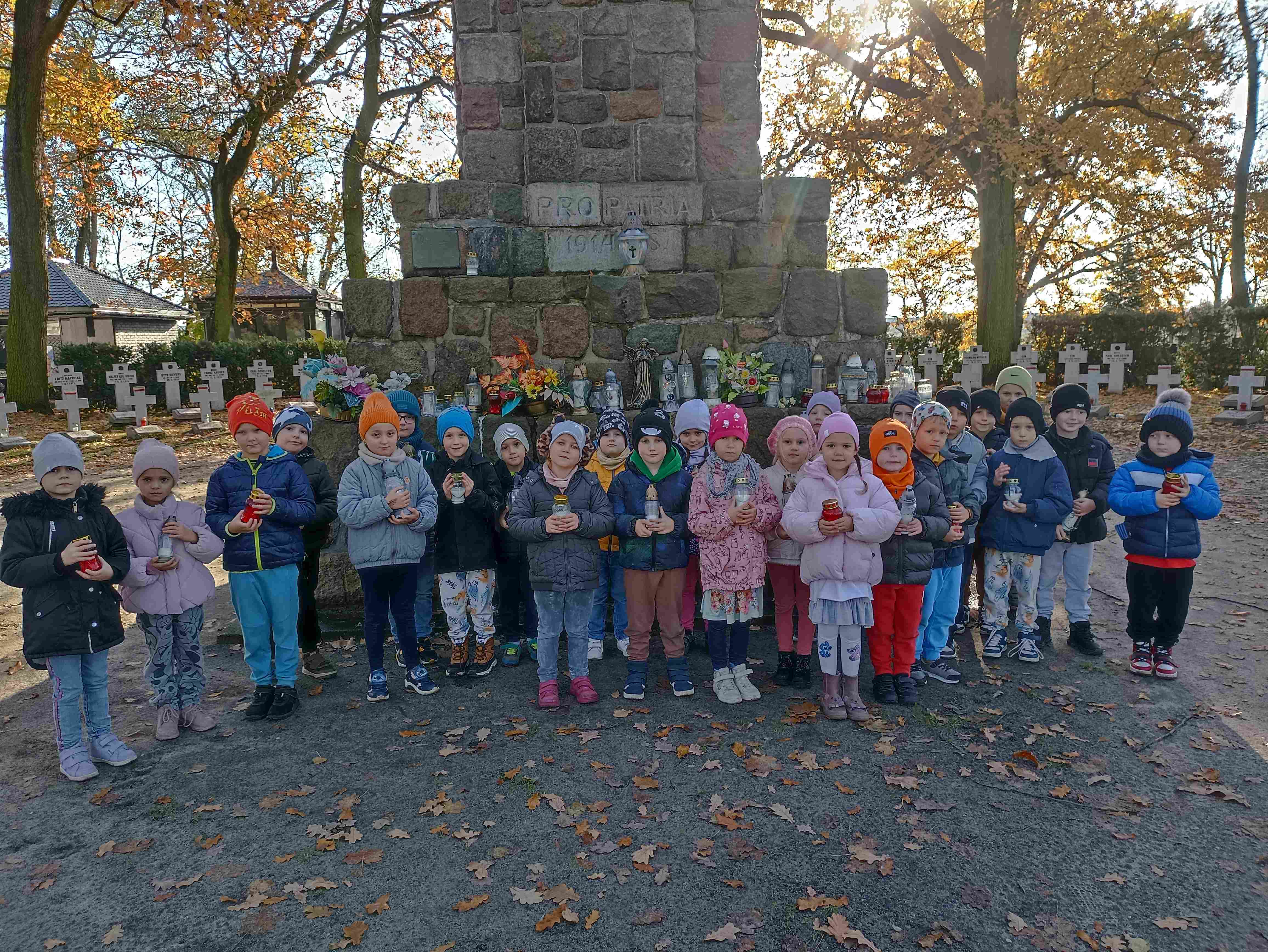We wtorek 4 listopada przedszkolaki odwiedziły pobliski cmentarz. Zapaliły symboliczne światełka na grobach ofiar wojny. Szły skupione i bardzo zaciekawione.