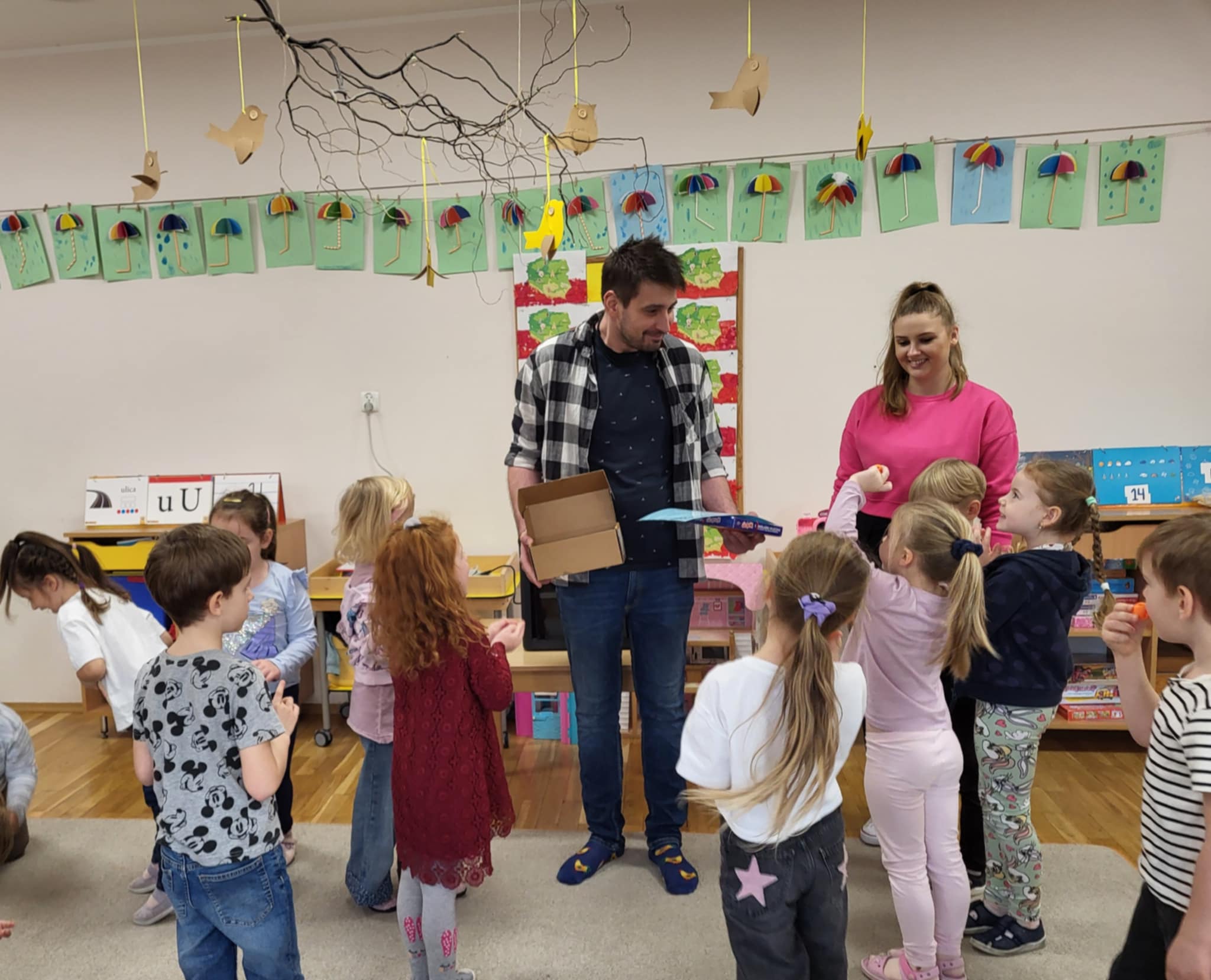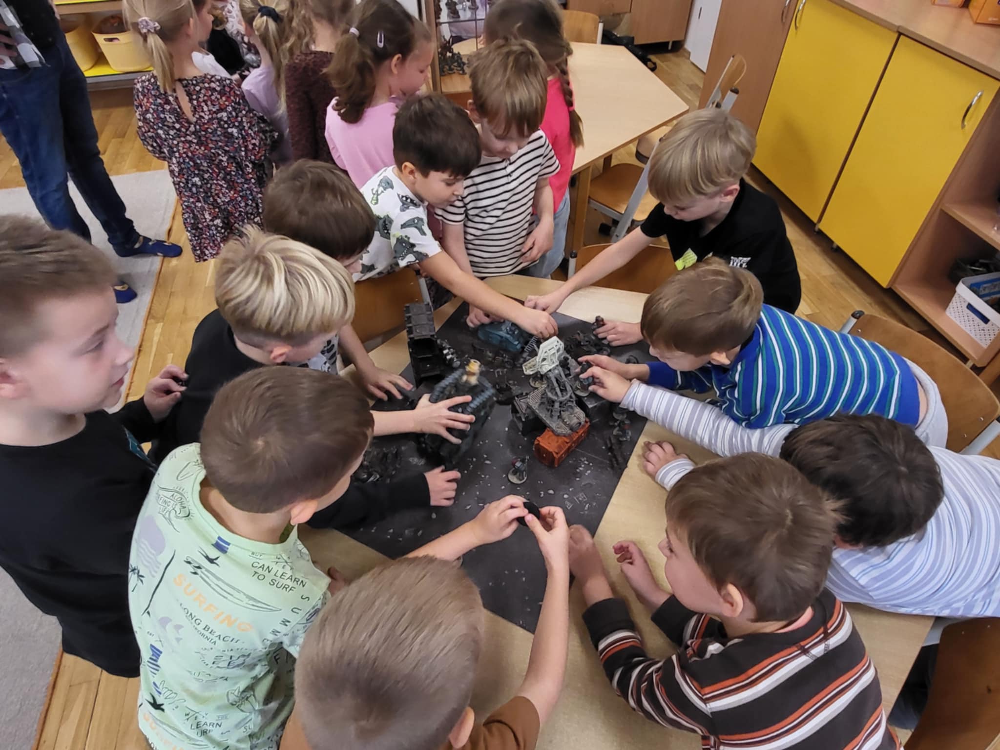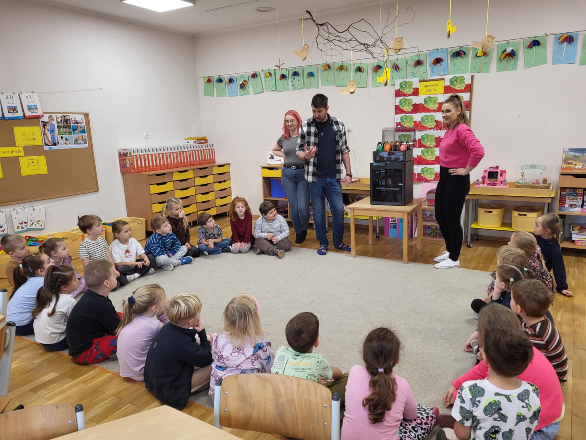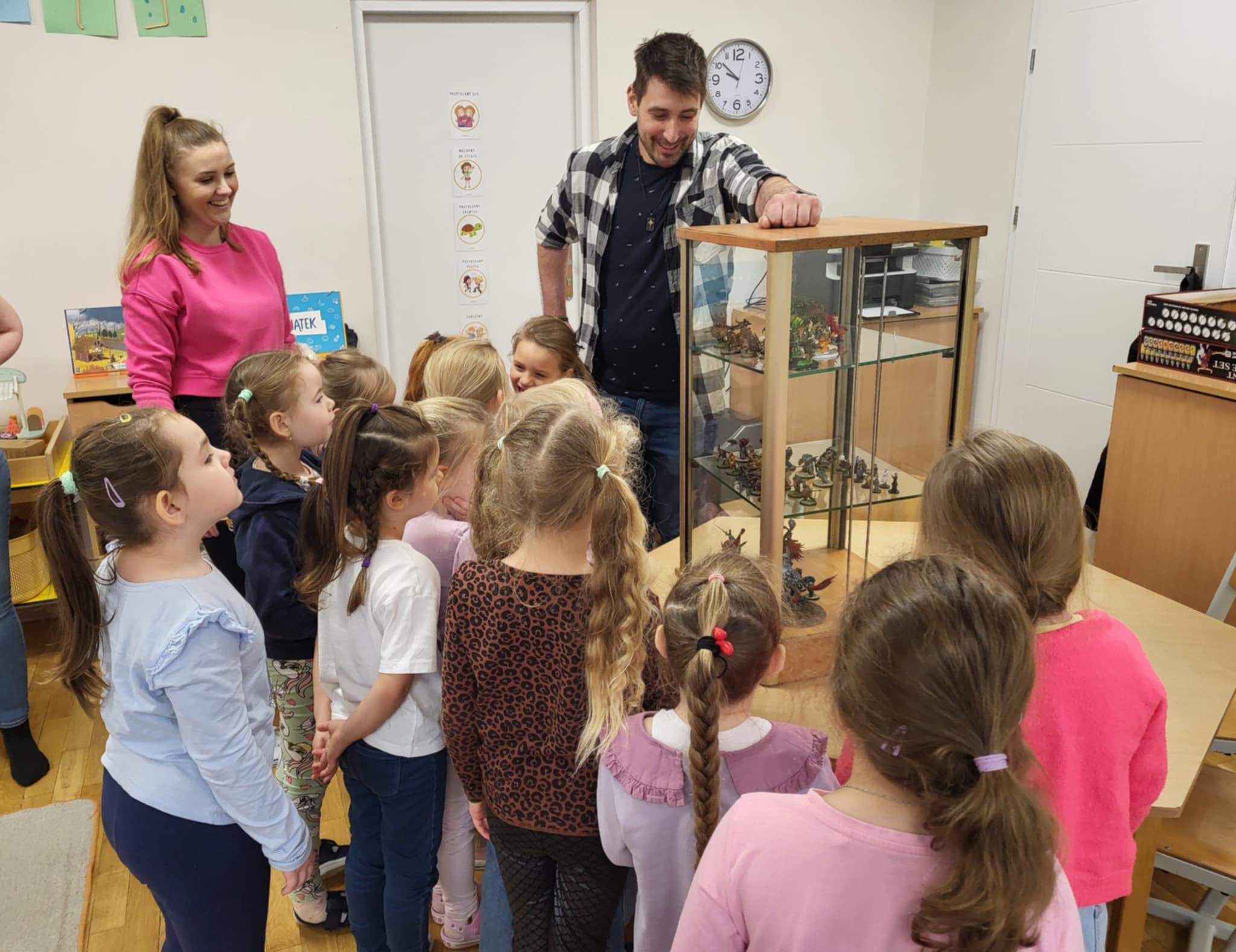 Pan Łukasz chciał zaprezentować dzieciom swoją pasję, jaką jest modelarstwo oraz czym zajmuje się na co dzień. Zaprezentował jak wygląda drukarka 3D, a także przygotował wystawę swoich dzieł. Wszyscy mogli je obejrzeć i dotknąć. Dodatkowymi atrakcjami były: dla chłopców – plansza z figurkami do zabawy; dla dziewczynek – domki do składania. W trakcie zajęć w drukarce przez cały czas tworzyła się piłeczka do zabawy, a dzieci mogły obserwować proces jej powstawania. Na koniec tata Nikodema zaprezentował wszystkim, co powstało i dla każdego przygotował już wcześniej takie same kuleczki w domu. Wszyscy miło i w ciekawy sposób spędziliśmy czas zdobywając dodatkowe doświadczenia.