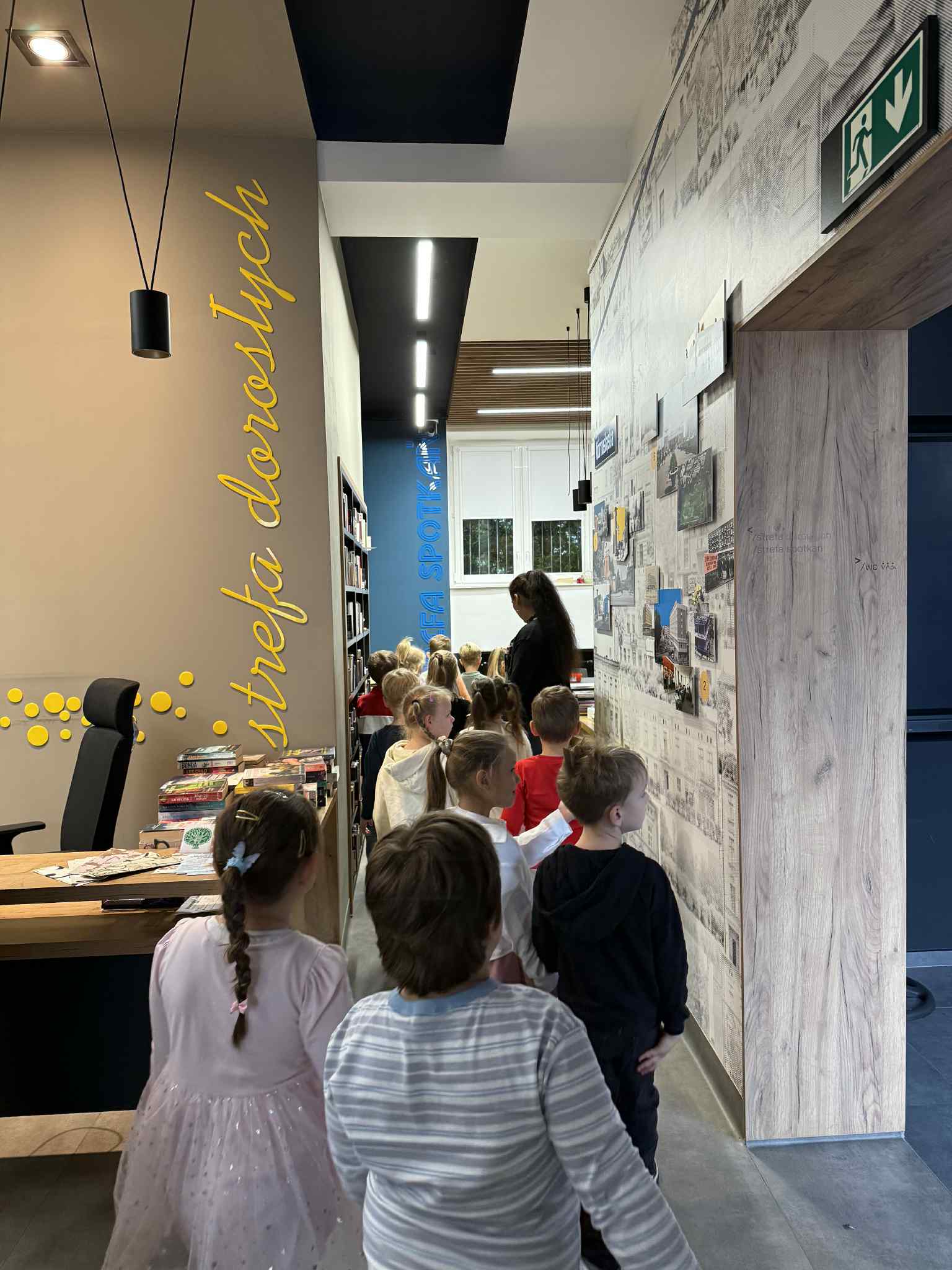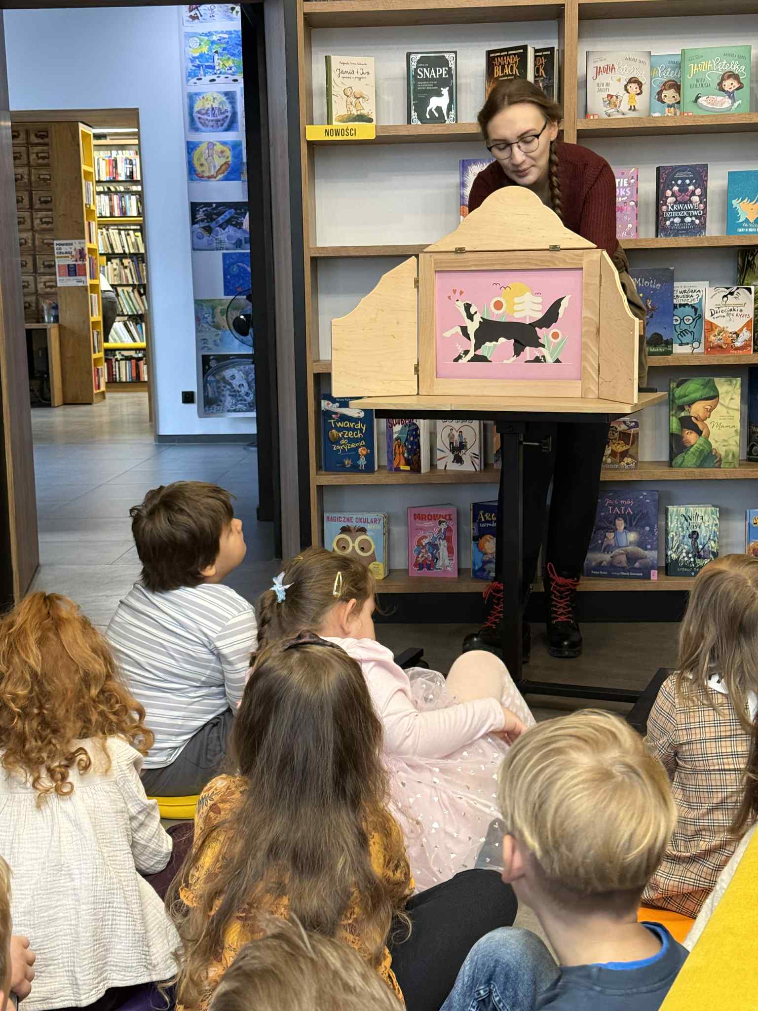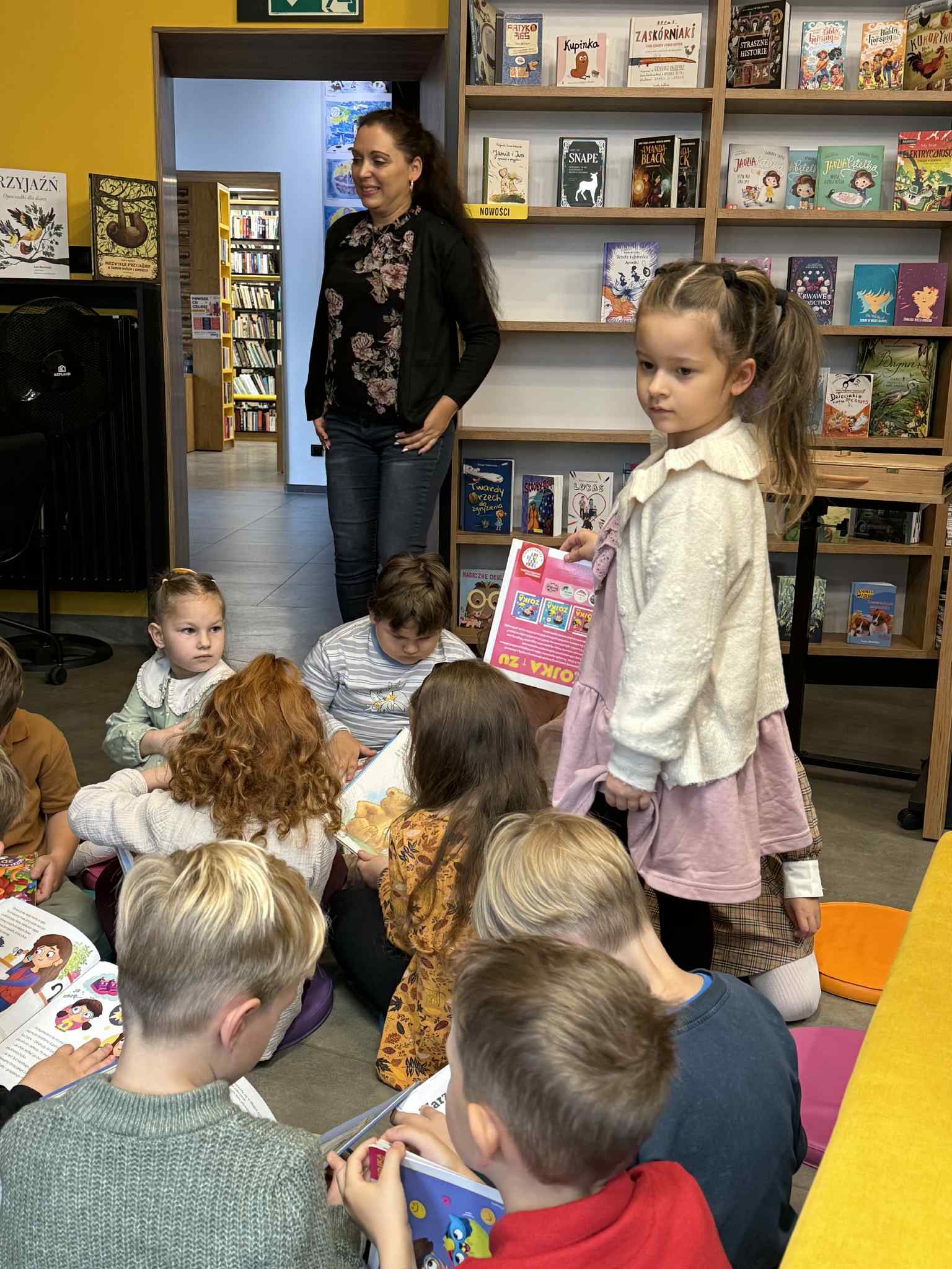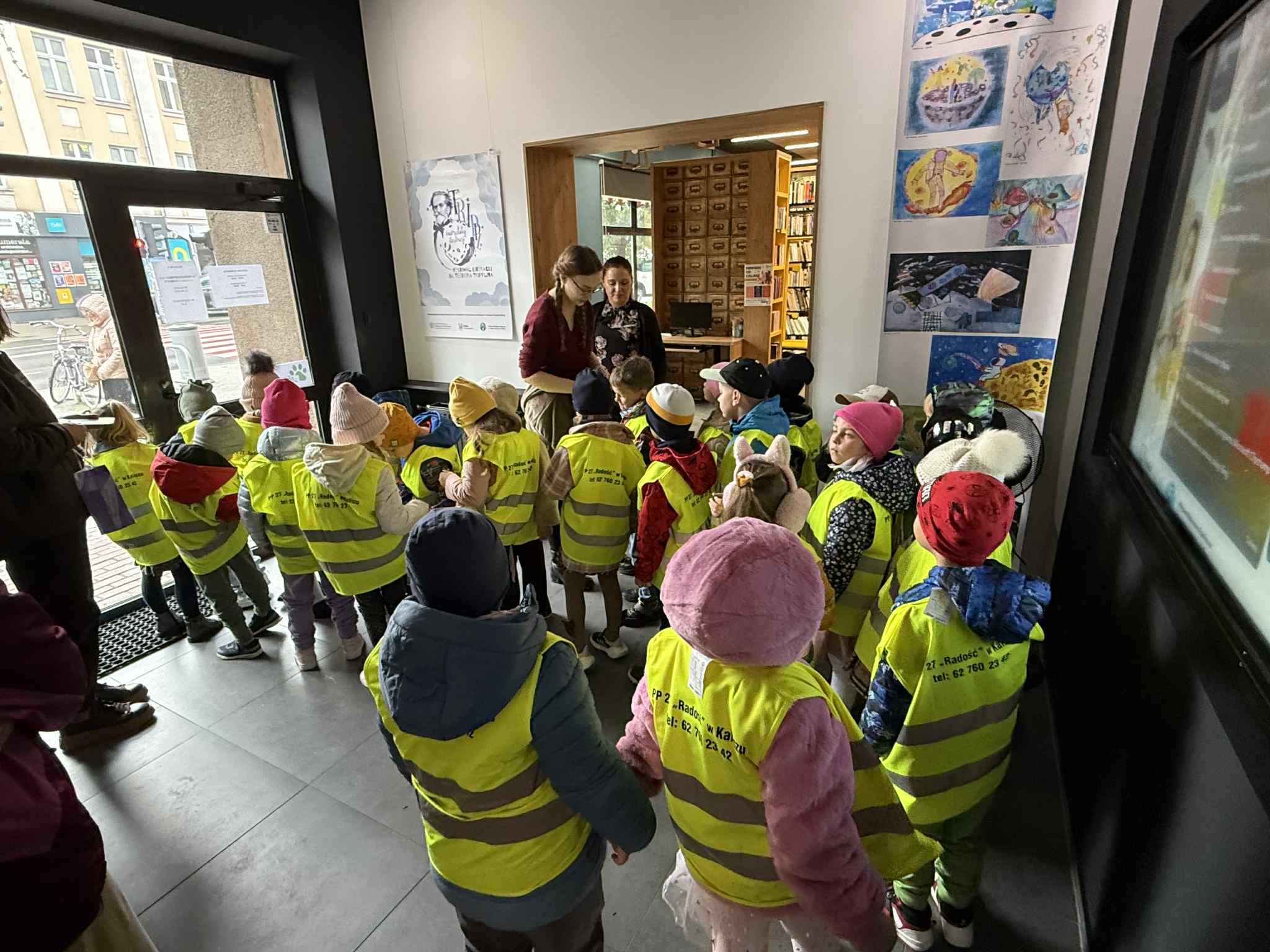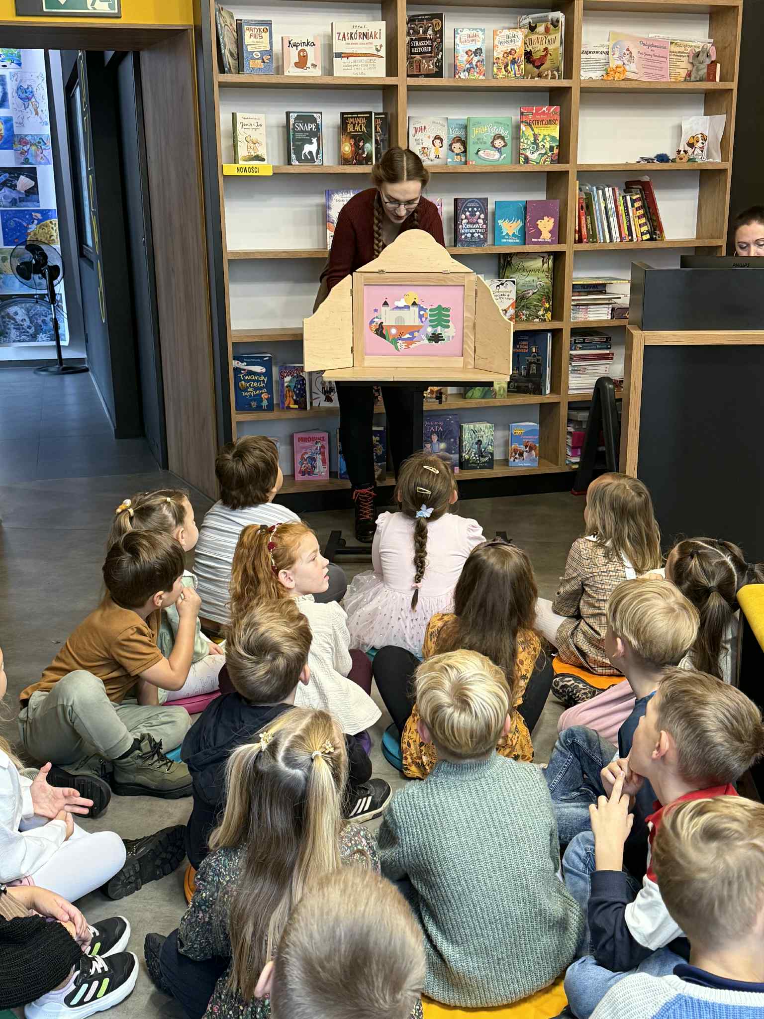 Dzieci dowiedziały się, co należy zrobić, aby stać się czytelnikiem biblioteki oraz jak należy się w niej zachować. W trakcie pobytu w bibliotece, rozwiązywały zagadki związane z postaciami z bajek, wysłuchały i obejrzały bajkę w formie teatrzyku Kamishibai czytaną przez panią Zuzię oraz oglądały bajkę dla dzieci niewidomych napisaną metodą Braille-a. Na zakończenie dzieci mogły zwiedzić część biblioteki dla dorosłych ale żeby tam dotrzeć, trzeba było przejść przez specjalny tunel.