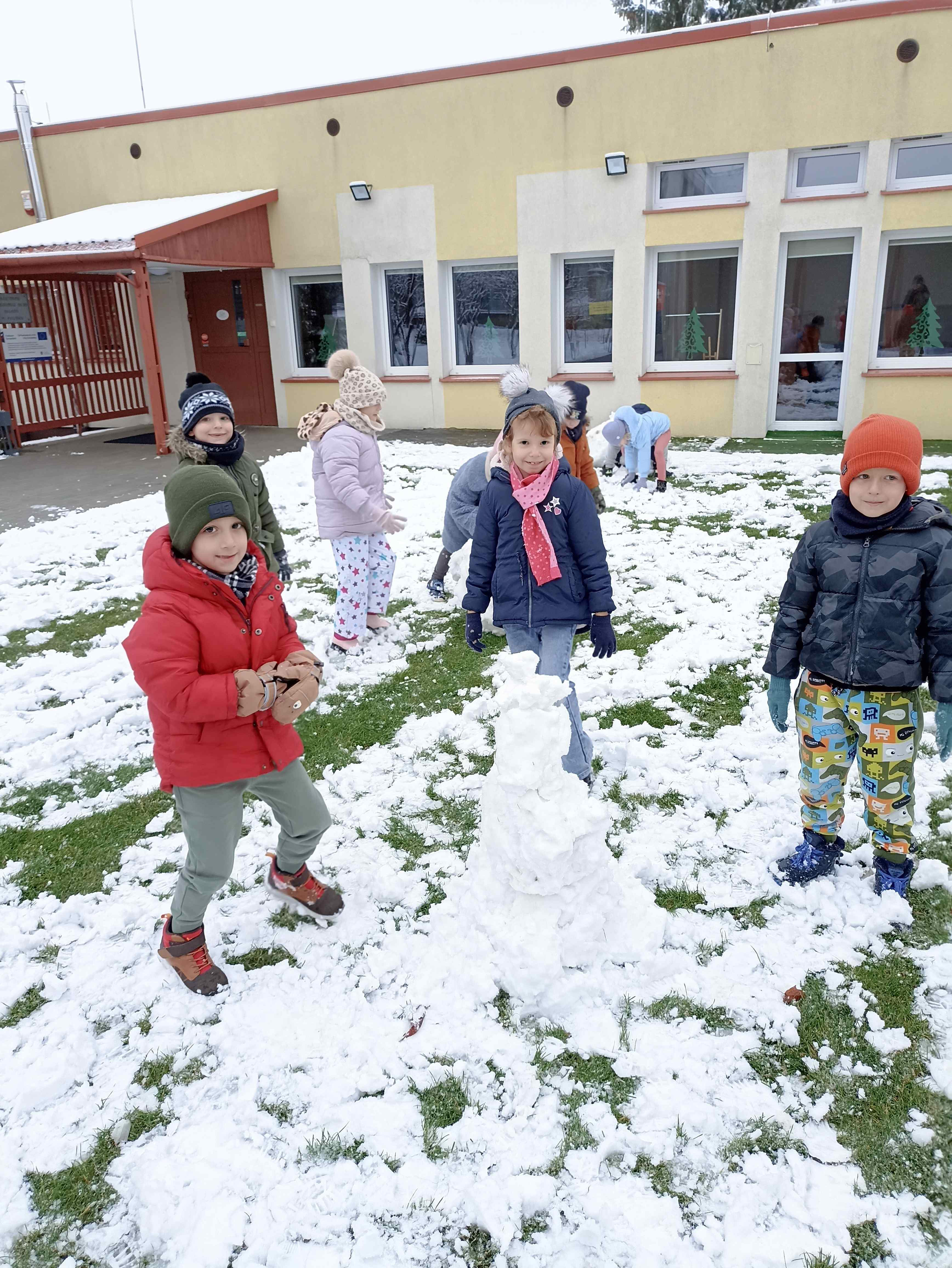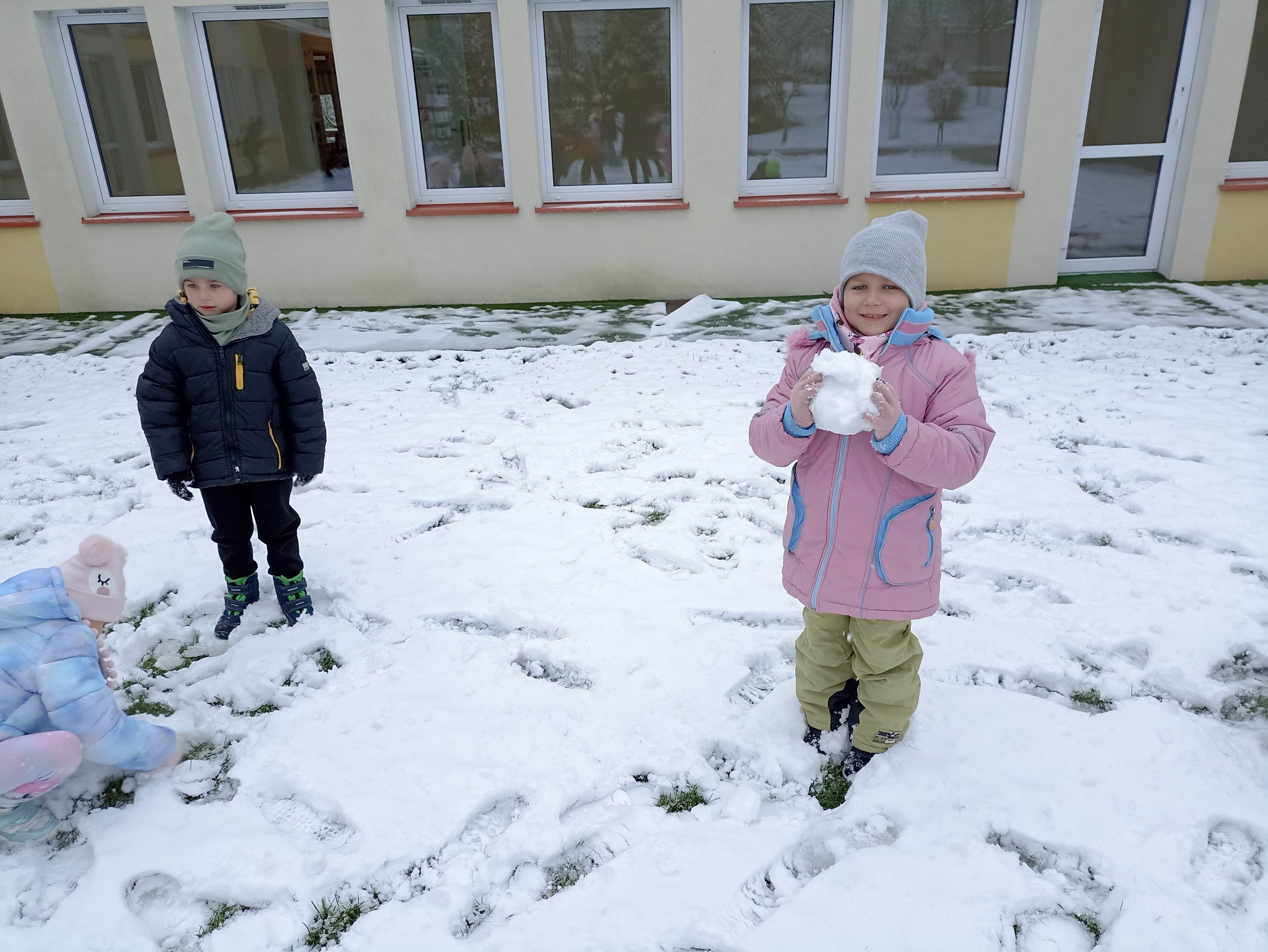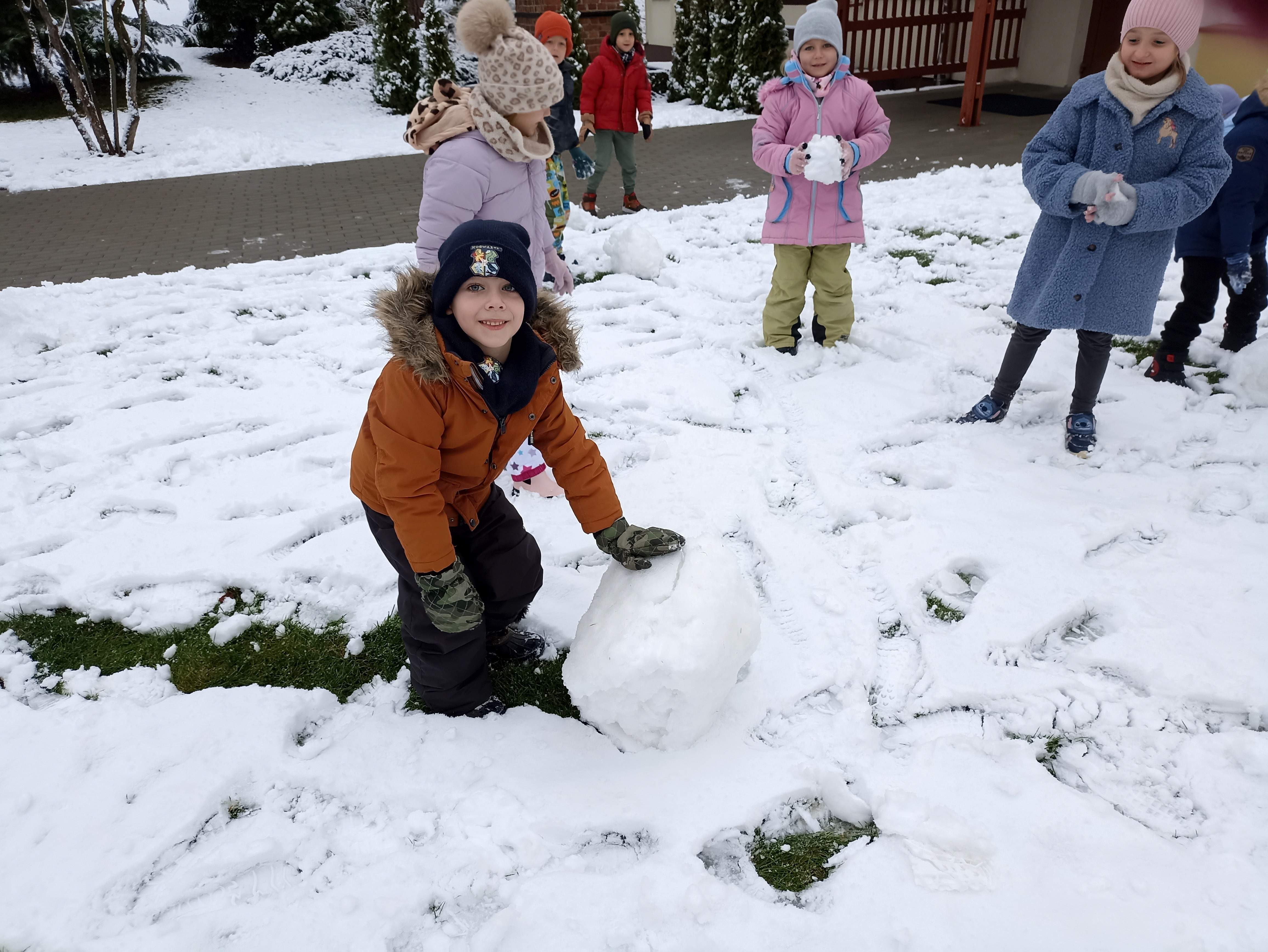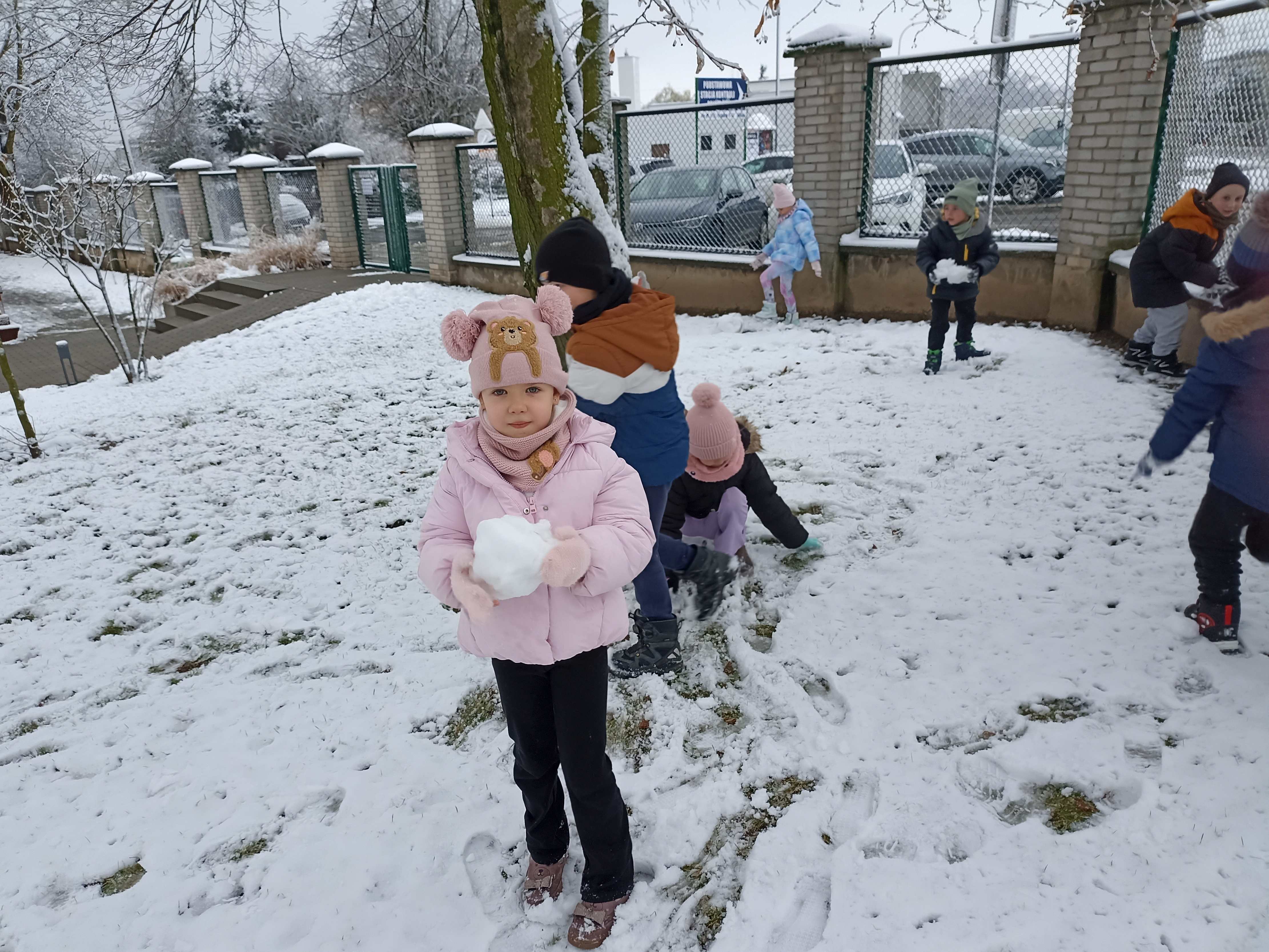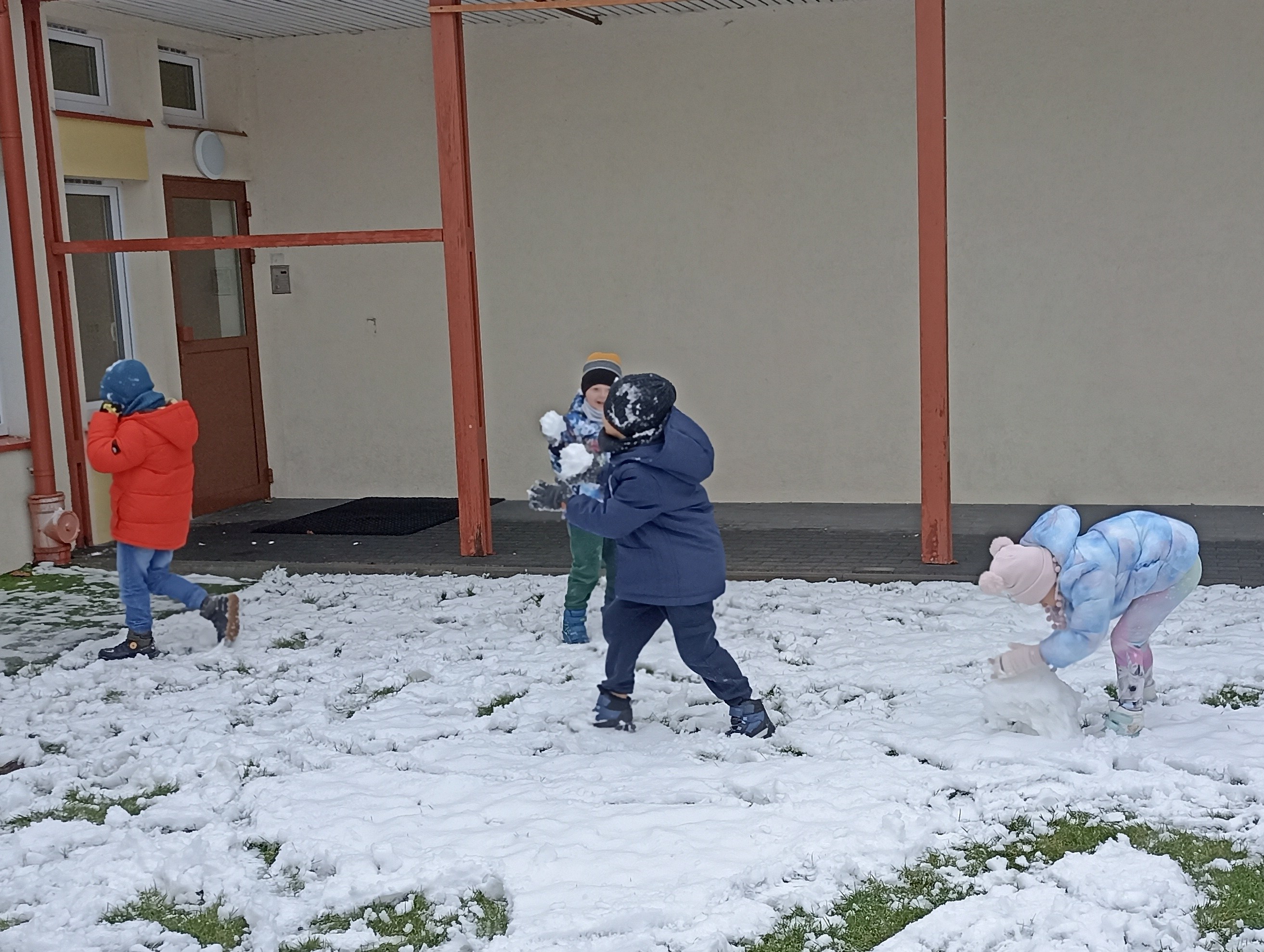 Dzieci lepiły bałwany, ćwiczyły rzuty śnieżkami do celu, a także biegały po białym puchu, rozwijając sprawność ruchową i współpracę w grupie. Nie zabrakło także rozmów o zasadach bezpieczeństwa podczas zabaw na śniegu.