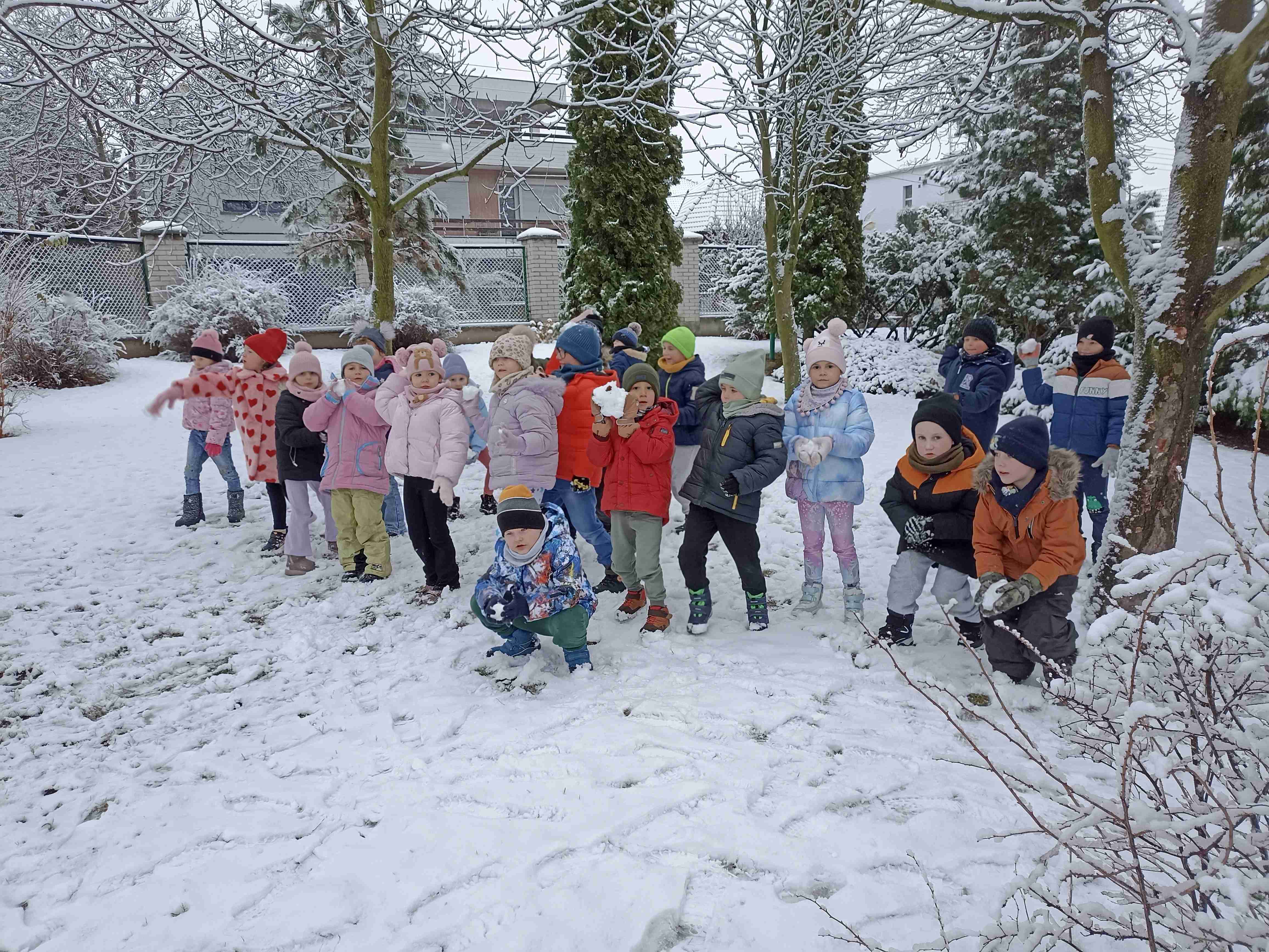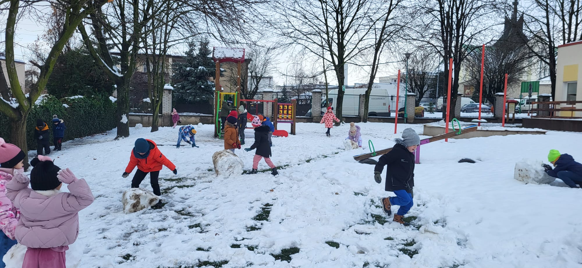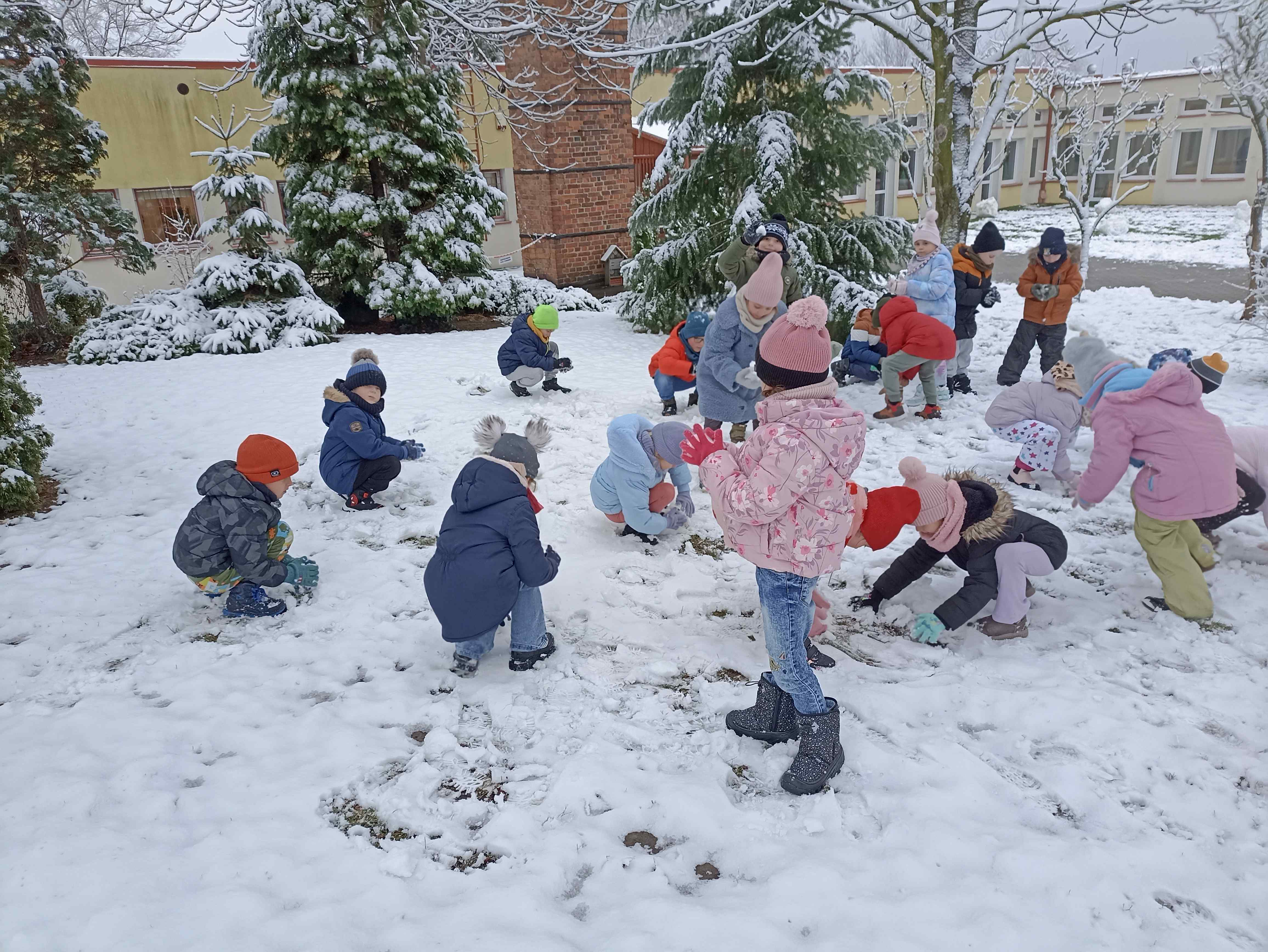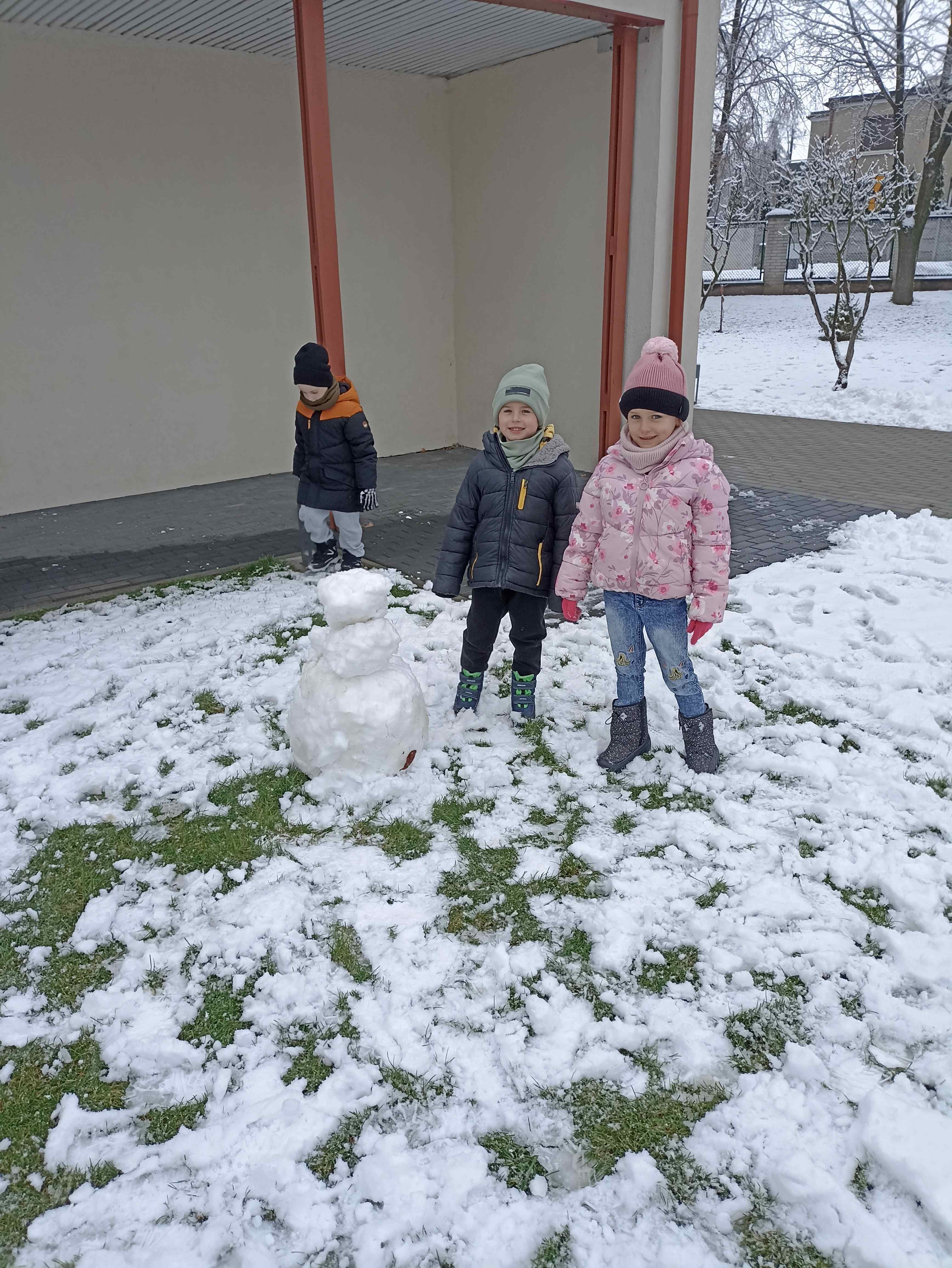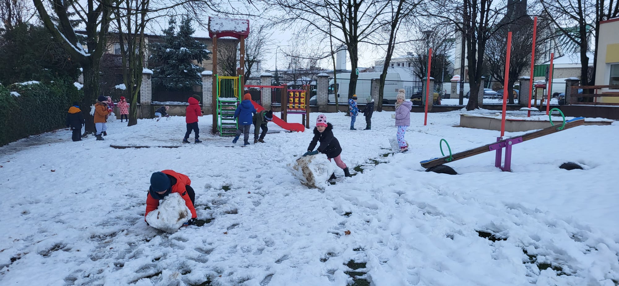Dzieci lepiły bałwany, ćwiczyły rzuty śnieżkami do celu, a także biegały po białym puchu, rozwijając sprawność ruchową i współpracę w grupie. Nie zabrakło także rozmów o zasadach bezpieczeństwa podczas zabaw na śniegu.