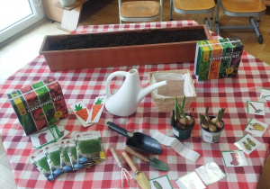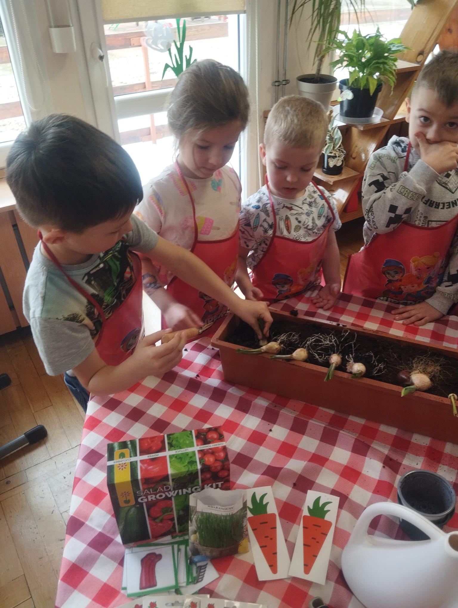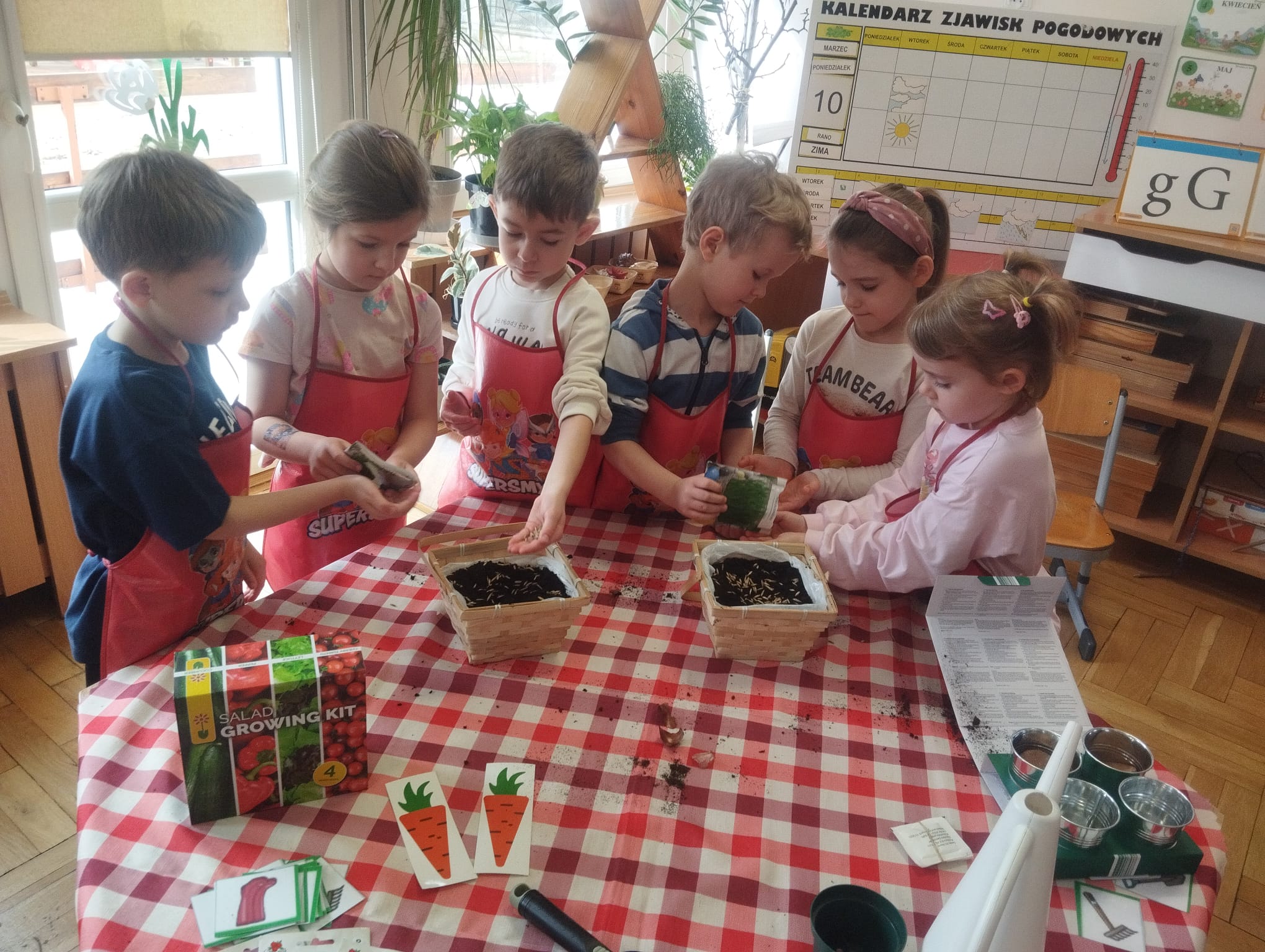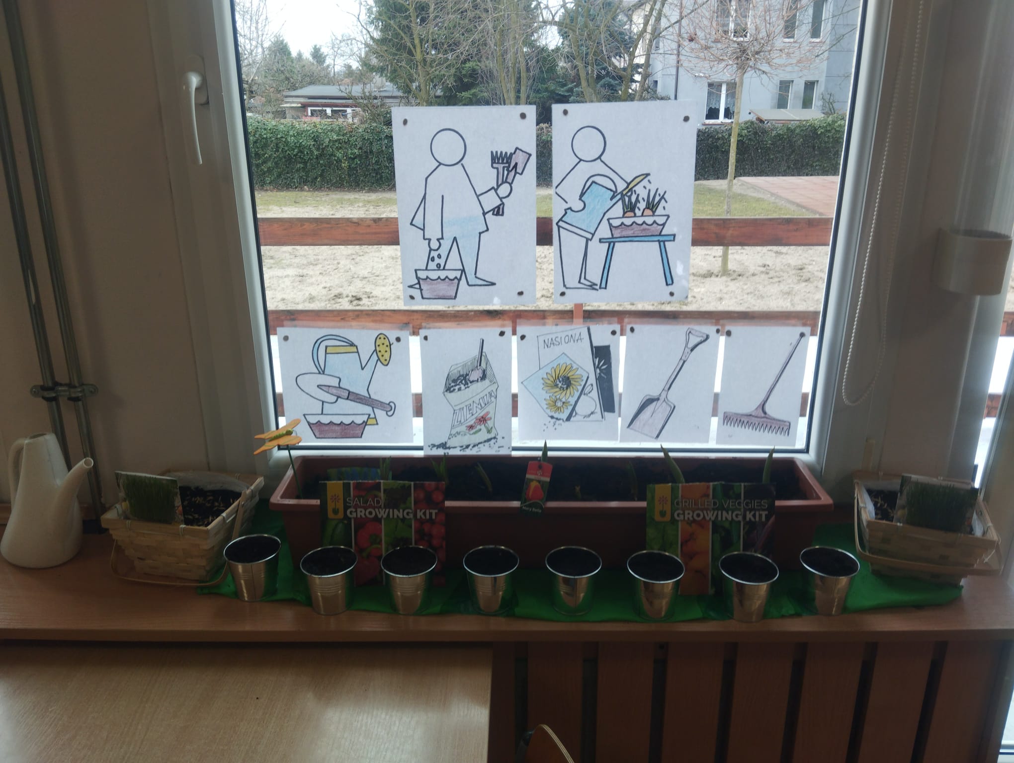 Sialiśmy owies, paprykę, rukolę, sadziliśmy szafirki i tulipany, bratki. Założyliśmy także hodowlę fasoli.
