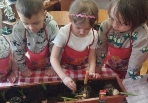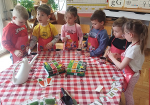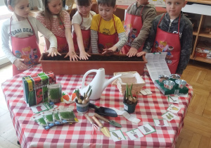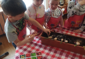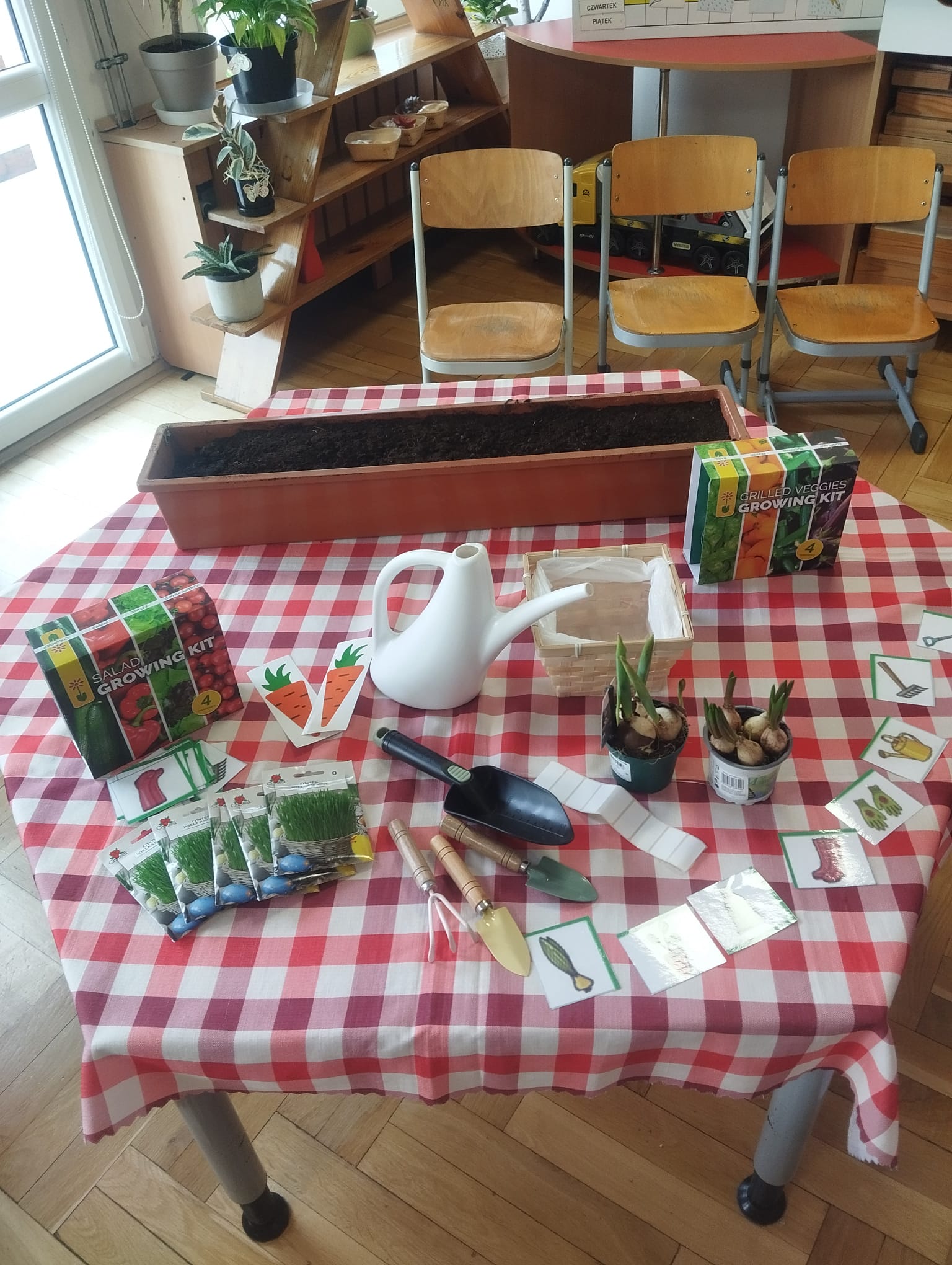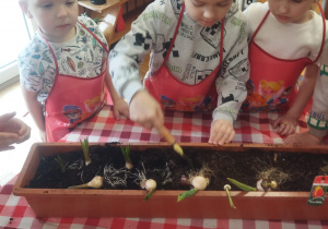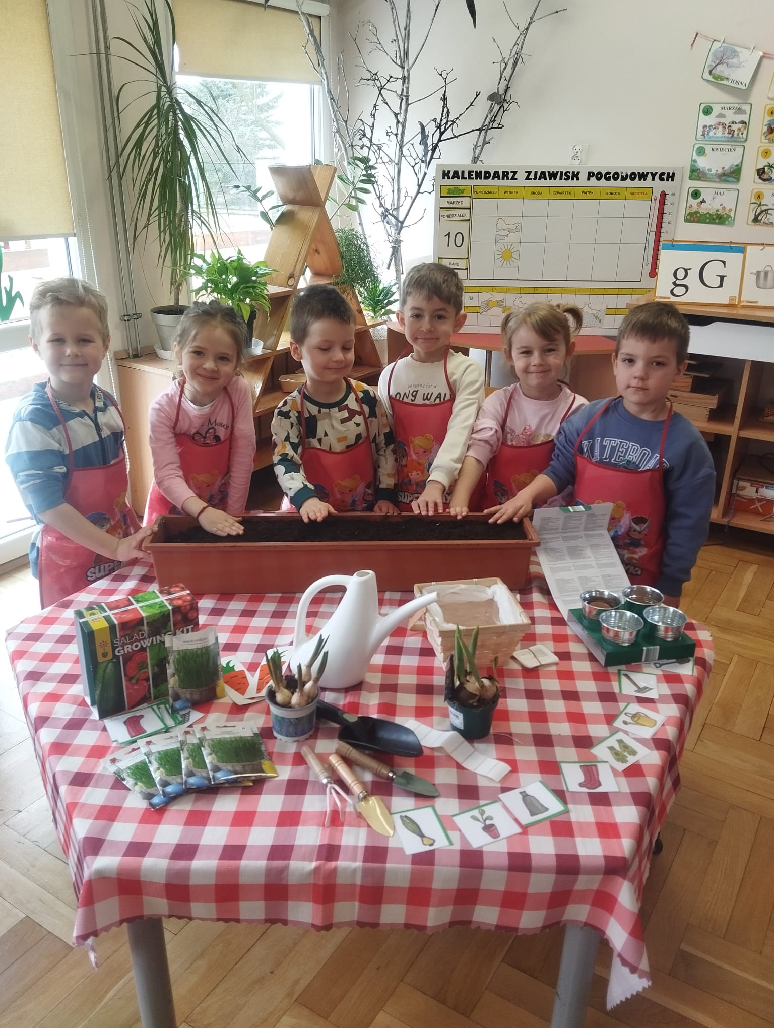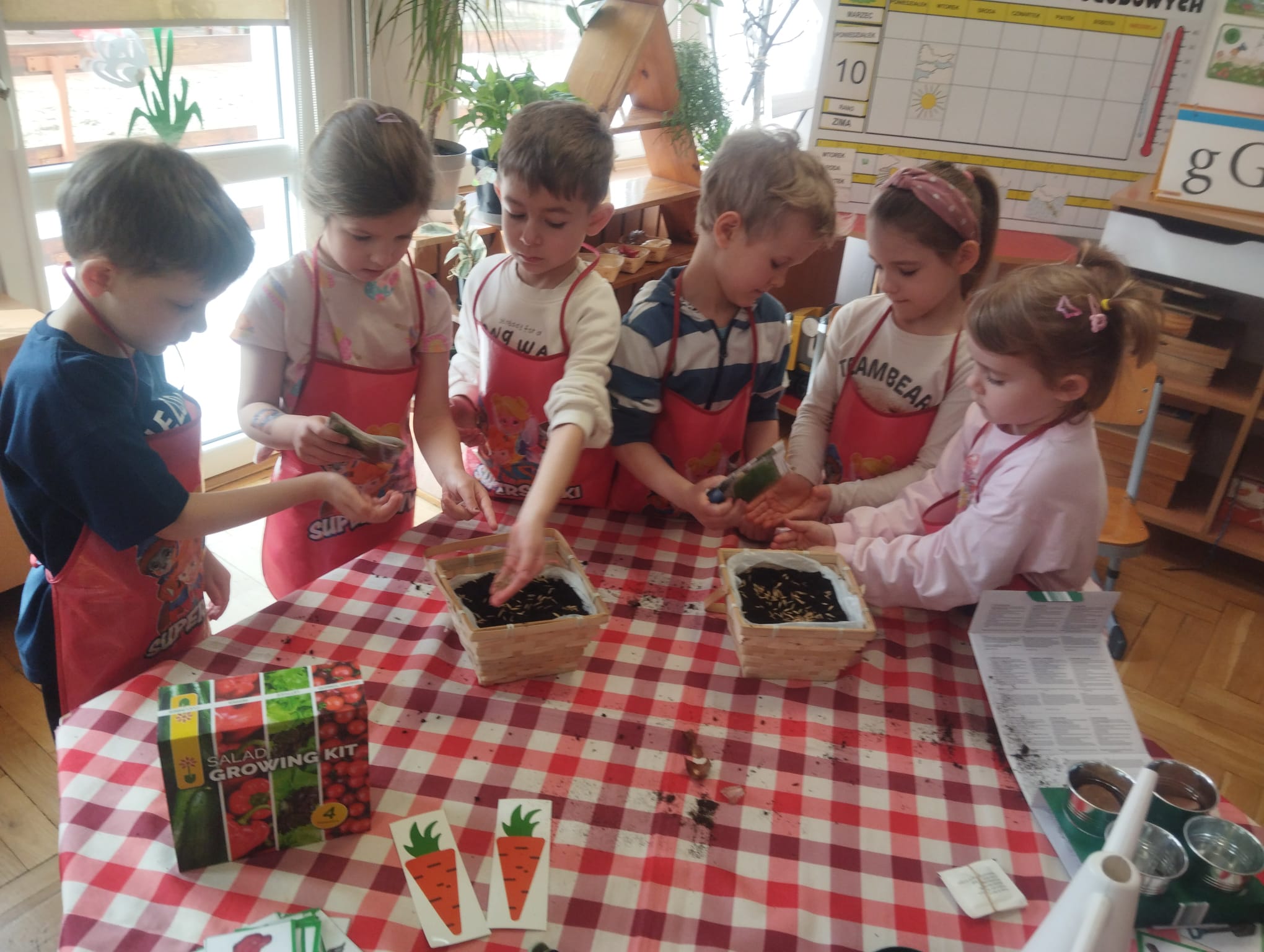 Sialiśmy owies, paprykę, rukolę, sadziliśmy szafirki i tulipany, bratki. Założyliśmy także hodowlę fasoli.