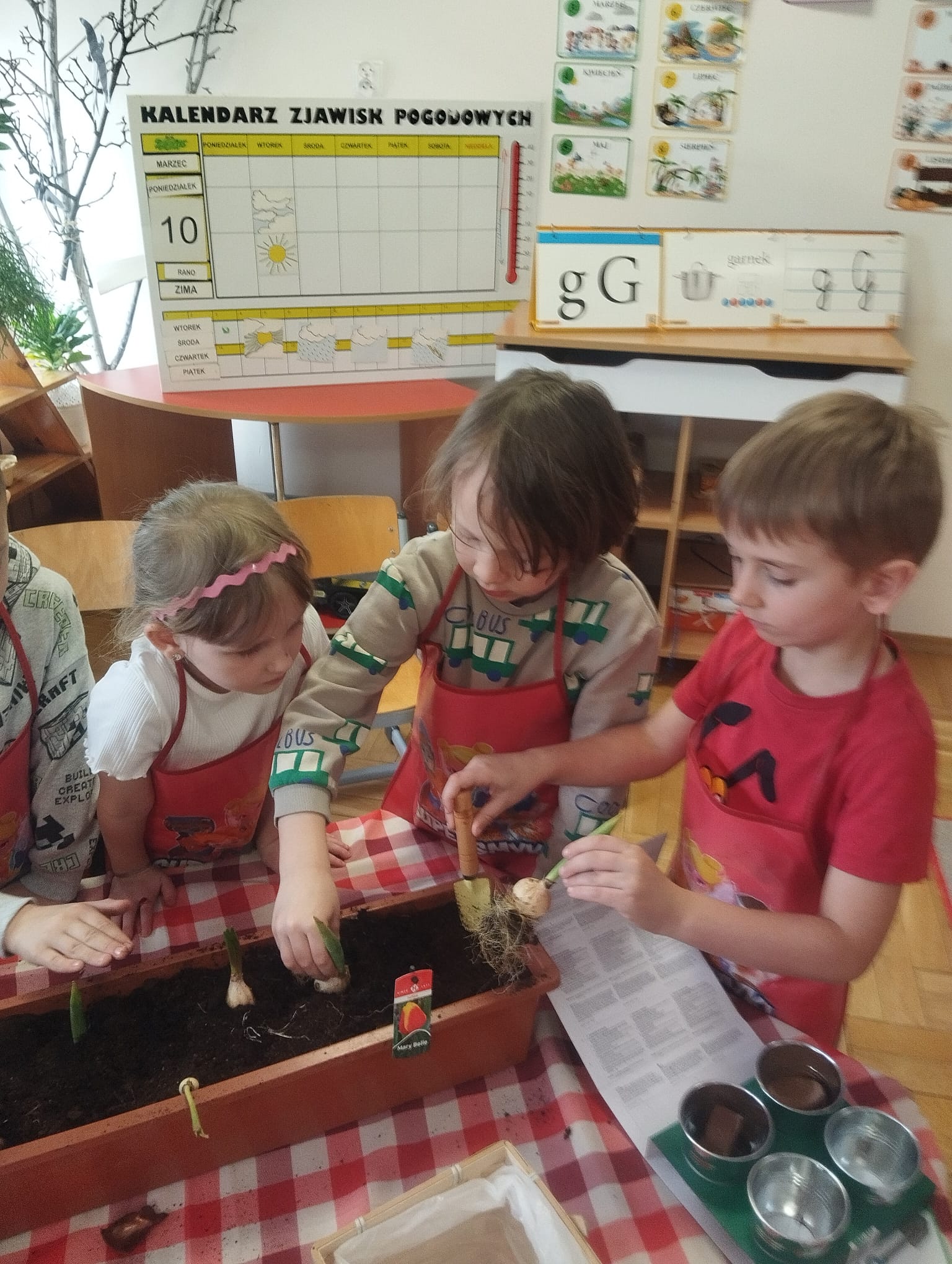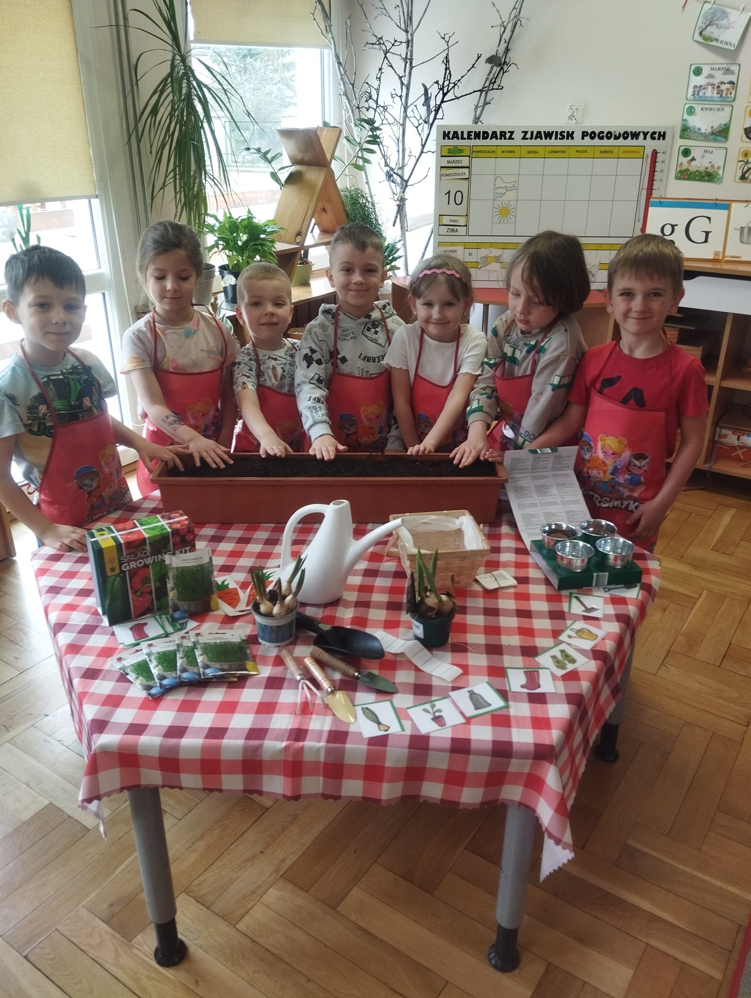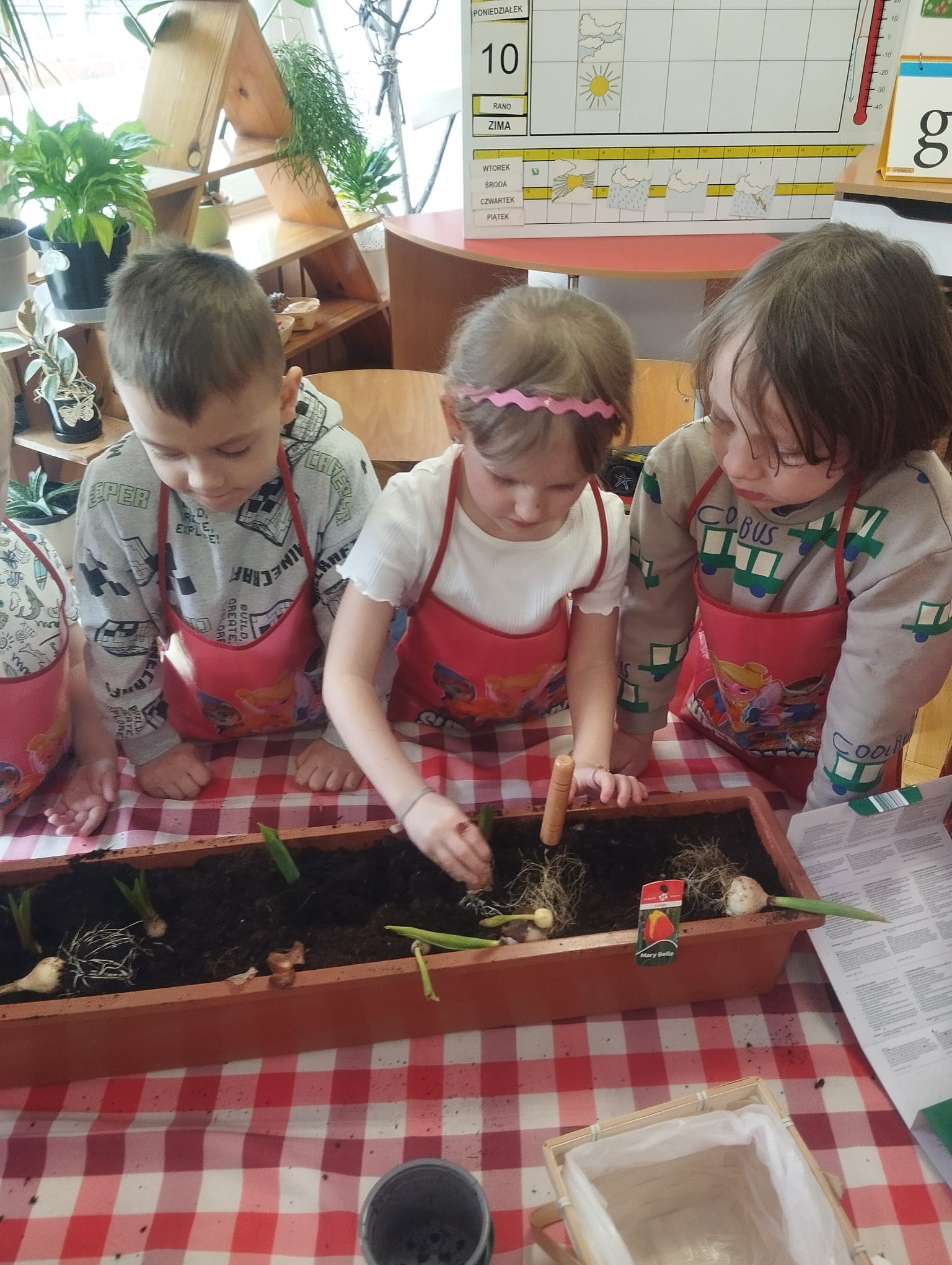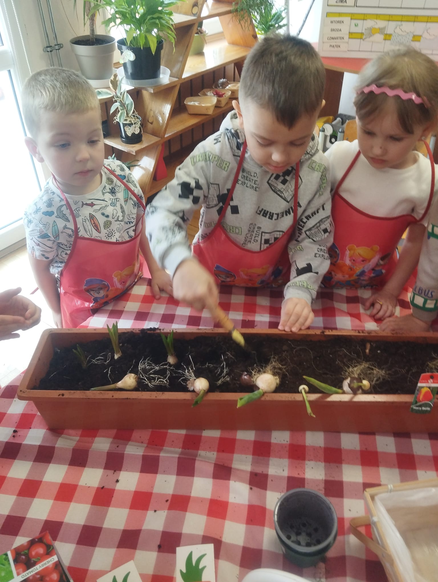 Pojawiają się pierwsze kwiaty, przylatują z ciepłych krajów ptaki. Dzieci zajęły się bliżej sianiem i sadzeniem roślin doniczkowych, aby obserwować moment kiełkowania, wzrostu oraz uczyć się opiekowania nimi podczas pobytu w przedszkolu.